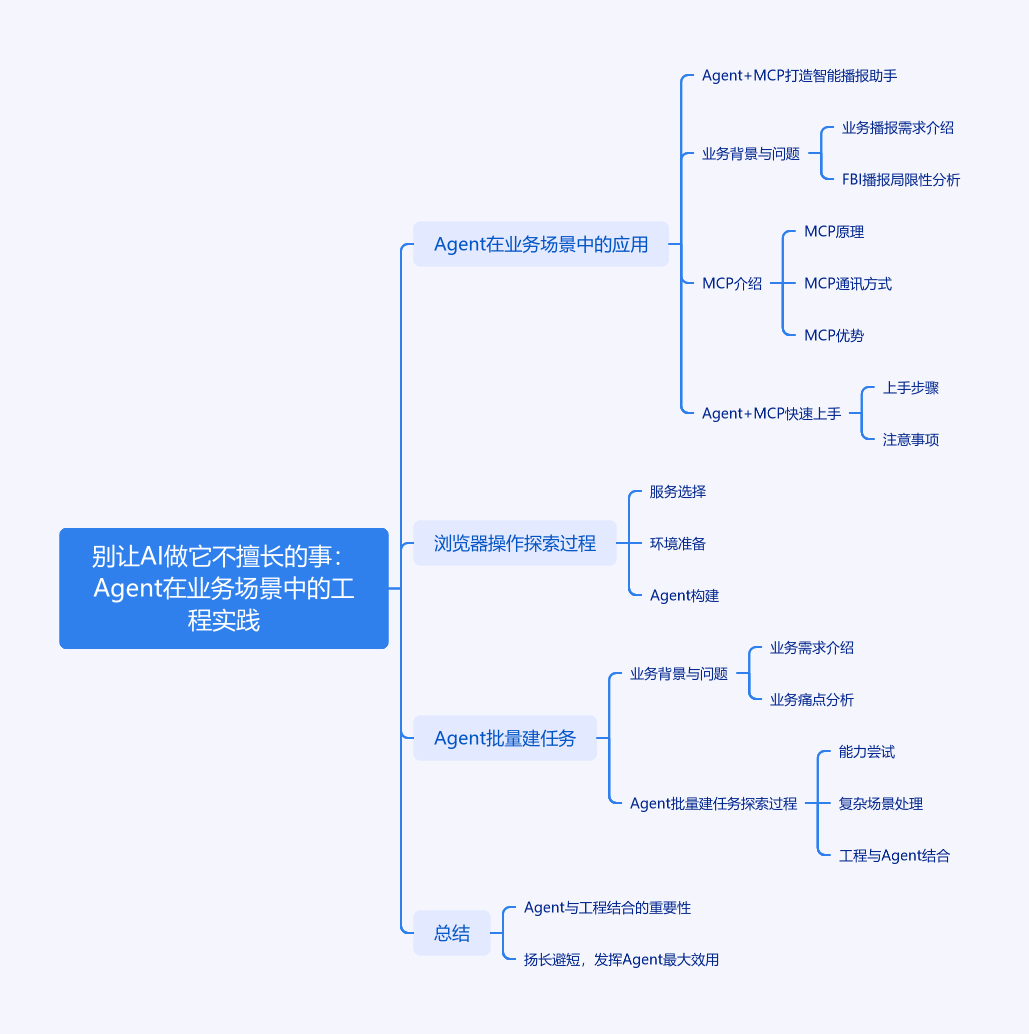文章分享AI Agent技术在“智能播报助手”和“批量建任务”业务场景的实践。在“智能播报助手”场景,结合MCP解决FBI局限性,介绍MCP原理、上手步骤等;“批量建任务”场景,起初让Agent处理复杂工作效率低,后工程与Agent结合,发挥各自优势。总结指出应将Agent与工程结合,扬长避短,准确理解技术边界构建高效方案。