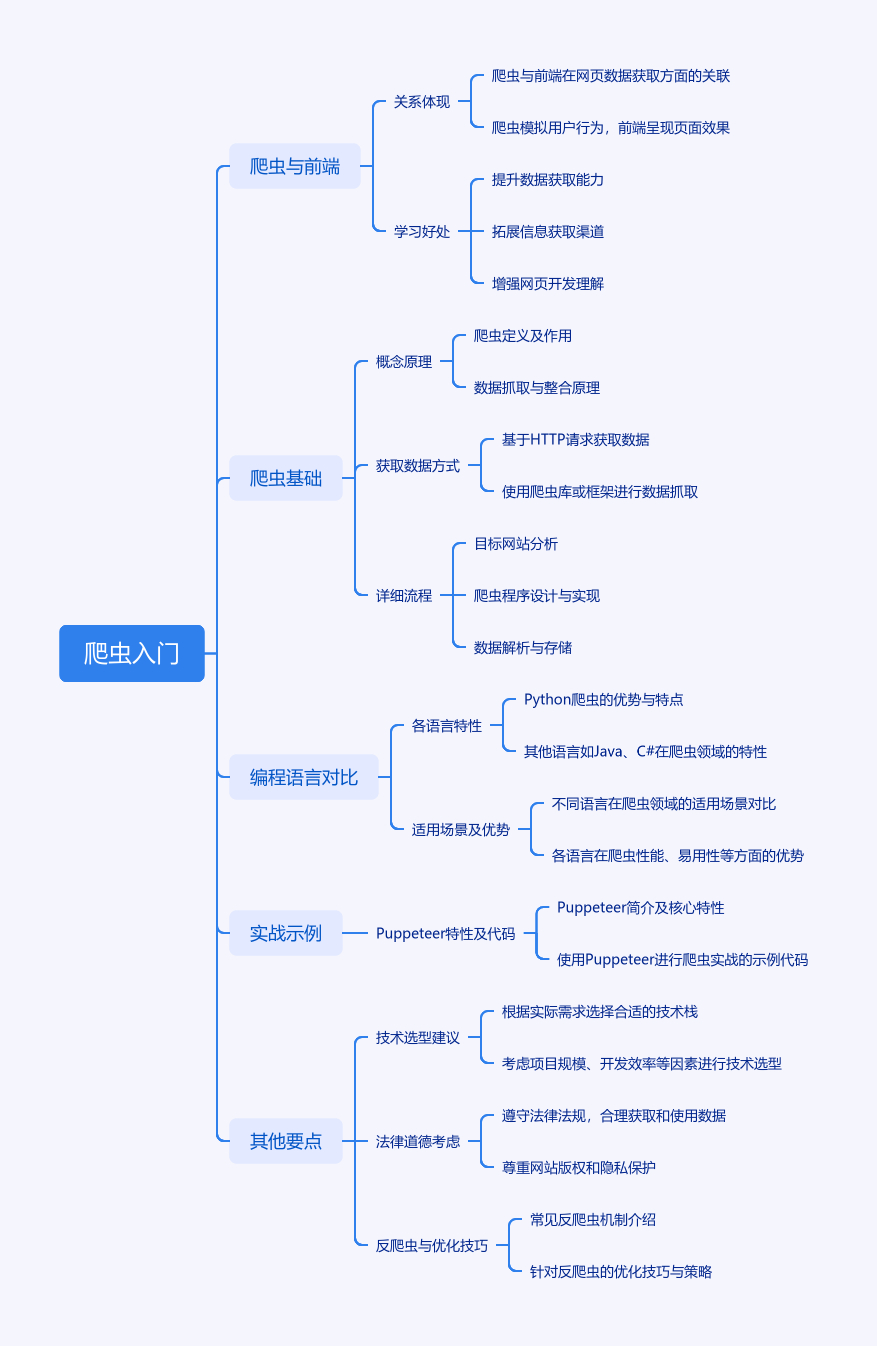 本文介绍爬虫入门知识。阐述爬虫与前端关系及学习好处,解释爬虫概念、原理和流程。对比Python、Node.js等语言在爬虫开发的特性,介绍各语言适用场景、优势和典型应用。给出Puppeteer实战示例,提供技术选型建议。还提及法律道德考虑、反爬虫技术和性能优化技巧,鼓励从简单静态页面开始探索爬虫。