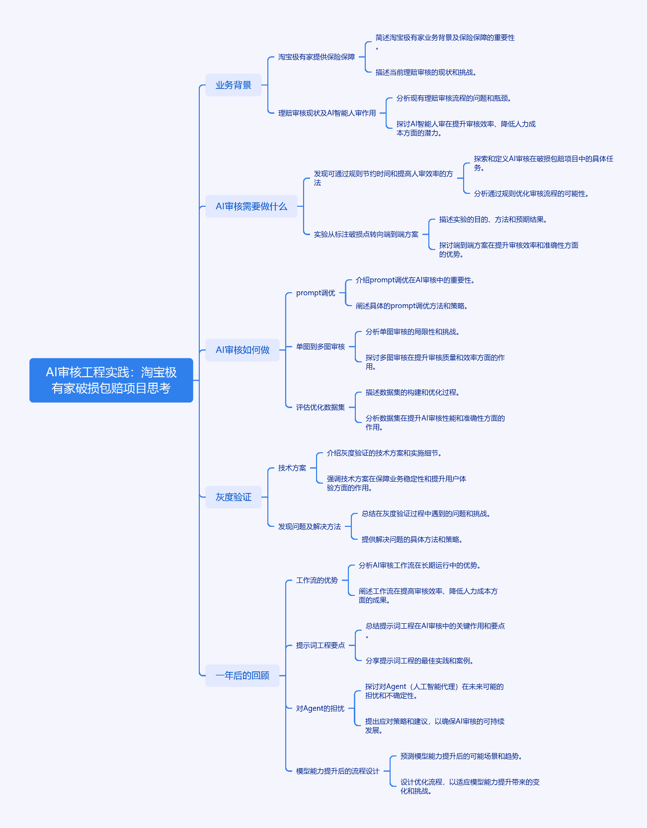 本文复盘淘宝极有家破损包赔AI审核项目。业务背景是保司审核理赔,当前流程耗精力且标准不一,AI智能人审可辅助。AI审核需做的工作包括通过规则节约时间、让模型标注破损点等。通过优化prompt、从单图到多图审核、评估优化数据集等提升效果。灰度验证发现需压缩图片、鼓励用户标注。回顾指出工作流可解决问题,提示词要拆解任务,模型能力提升后可重新设计流程。
