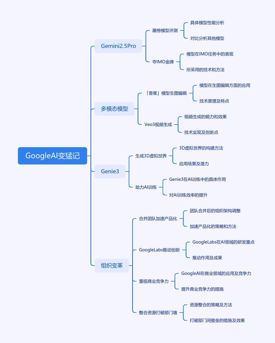 本文复盘 Google AI 崛起历程。此前 Google 在 AI 赛道是追赶者,如今凭借系列产品重回前列。Gemini 2.5 Pro 屠榜模型评测、获 IMO 金牌,显示其大语言模型实力;图像上「香蕉」模型提升生图和编辑能力,Veo 3 解决视频生成瓶颈;Genie 3 可生成虚拟世界,助力 AI 训练。Google 通过组织架构调整和人才策略变化,将技术积累转化为产品力,未来有望更强大。