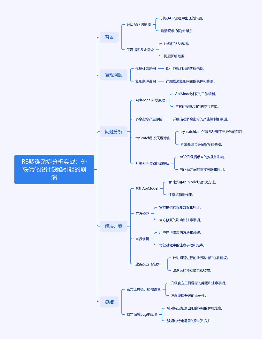 文章围绕R8编译优化工具中ApiModel外联优化设计缺陷展开。升级AGP后出现指向系统SurfaceTexture类的native崩溃,根源是多余的new - instance指令。文中介绍复现条件,分析ApiModel外联原理、多余指令产生原因、try - catch及升级AGP引发问题的缘由,还给出禁用ApiModel、官方修复、自行修复、业务改造四种解决方案,强调官方工具链升级要谨慎灰度验证。