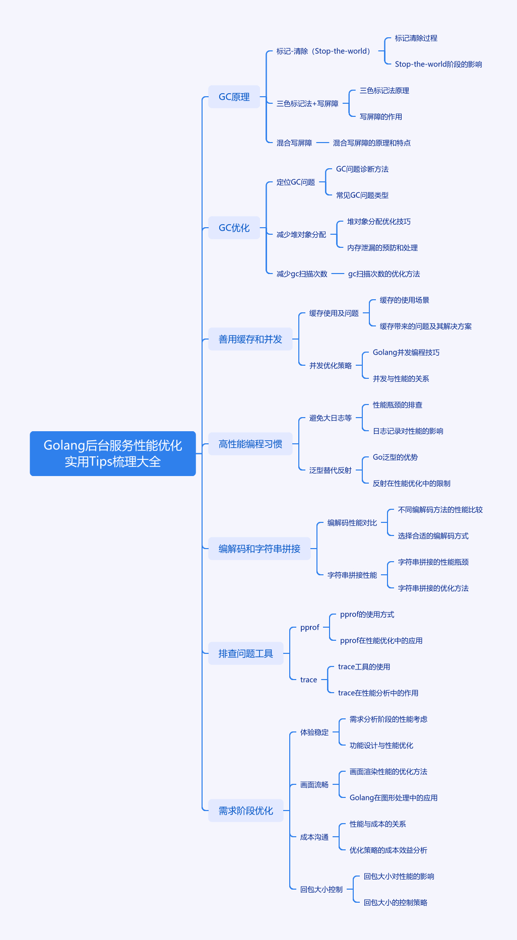 本文梳理Golang后台服务性能优化实用Tips。先介绍GC原理,如标记 - 清除、三色标记法+写屏障及混合写屏障;阐述GC优化方法,包括减少堆对象分配、降低扫描次数。还提及善用缓存和并发,如非关键路径异步化、减少锁竞争。给出高性能编程习惯,像避免大日志、深度拷贝和反射。介绍编解码选型和字符串拼接性能。最后说明用pprof、trace排查问题,以及需求阶段的体验优化要点。