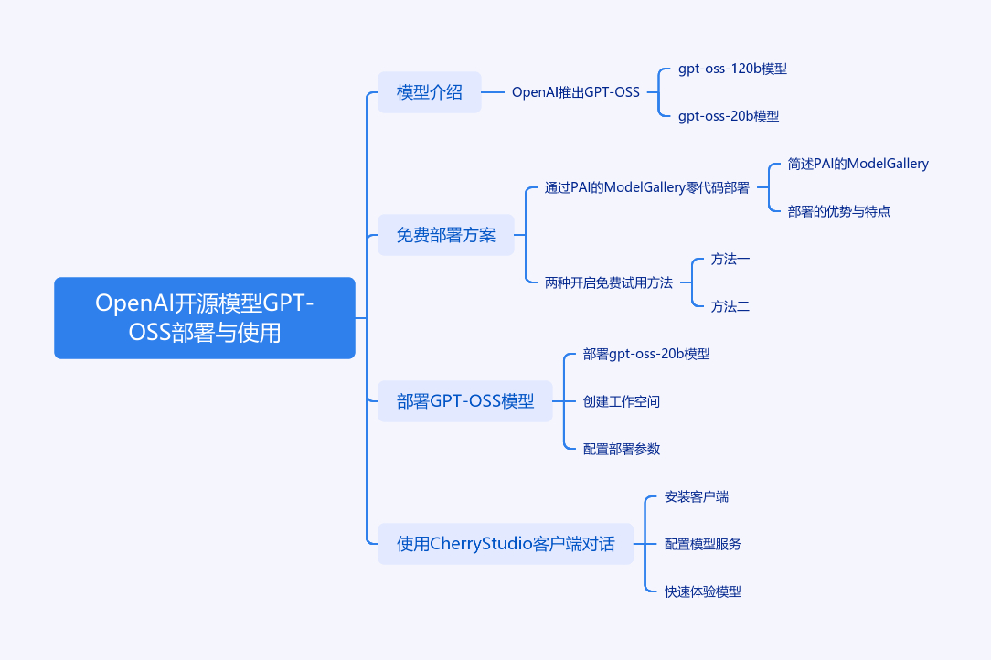 8月OpenAI推出gpt - oss - 120b和gpt - oss - 20b开源模型,表现强劲。本方案可通过人工智能平台PAI的Model Gallery零代码一键部署,且免费体验。介绍了开启免费试用的两种方法,还说明了部署gpt - oss - 20b模型的步骤,包括创建工作空间、配置部署参数等。最后介绍使用Cherry Studio客户端进行对话,如安装客户端、配置模型服务和快速体验模型。