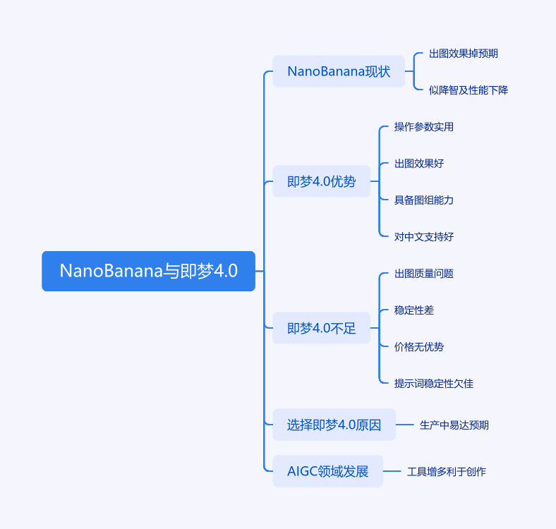 文章对比Nano Banana与即梦4.0,指出Nano Banana正式版出图效果掉预期、似降智。即梦4.0是字节AIGC拳头产品,操作参数实用,出图效果好,亚洲人面孔和汉字处理领先。虽有出图质量、稳定性、价格、提示词稳定性等不足,但在实际生产中更易达预期,作者已将生产环境API从Nano Banana切换到即梦4.0。最后提到AIGC领域工具增多,对创作者是好事。