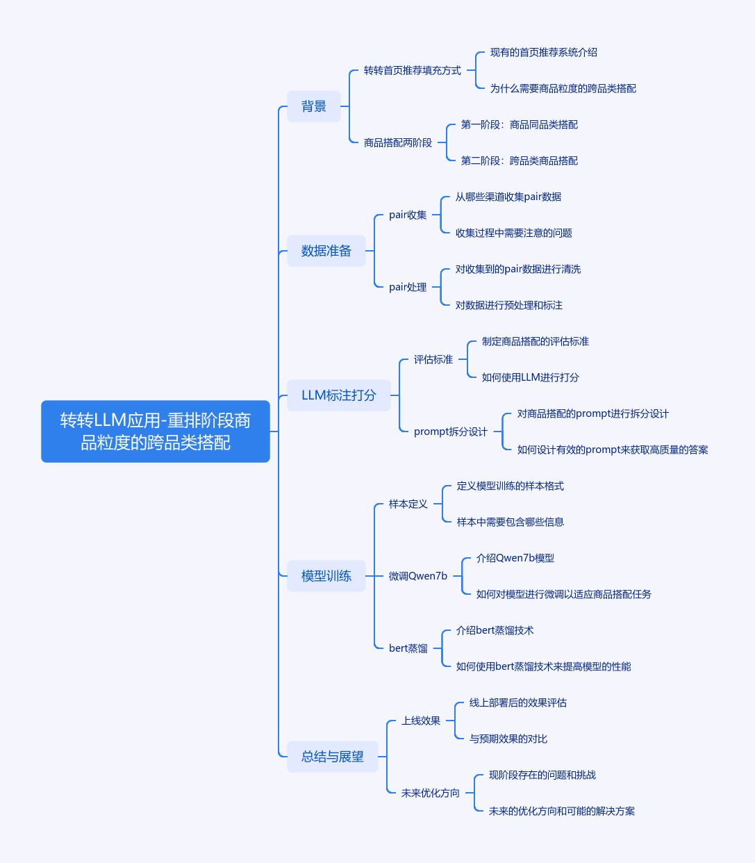 文章围绕转转LLM应用重排阶段商品粒度的跨品类搭配展开。先介绍背景,即通过构建pair对训练模型提升搭配效率与体验。接着说明数据准备,含pair收集与处理;LLM标注打分从5个维度评估可搭配性并拆分prompt;模型训练通过蒸馏解决大模型上线耗时问题,先微调Qwen 7b再进行bert蒸馏。最后提到上线效果良好,未来会用更细粒度属性优化及在新用户上尝试联合搭配展示。