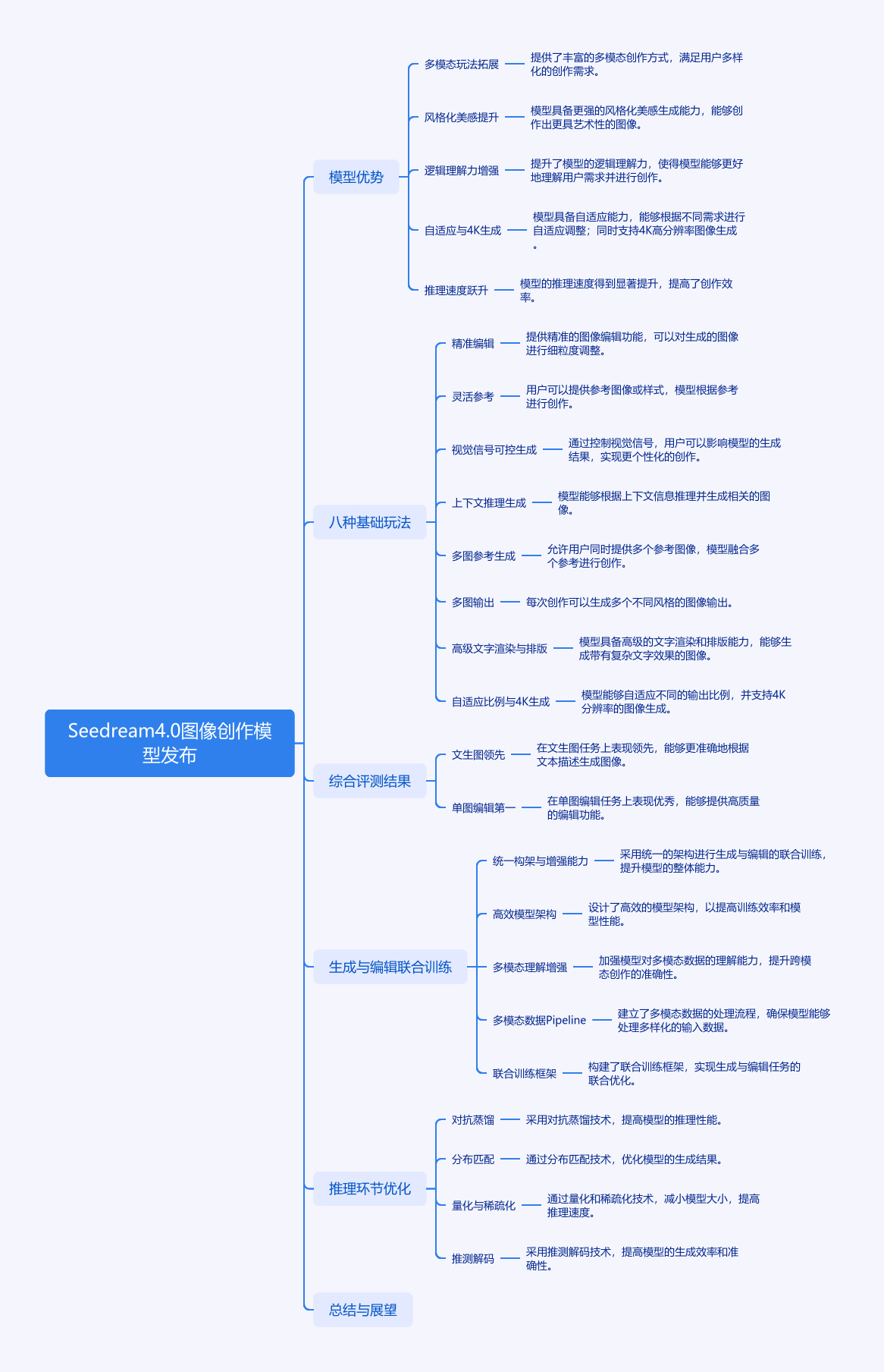 字节跳动 Seed 团队发布新一代图像创作模型 Seedream 4.0,在多模态效果、速度和可用性上显著突破,玩法多样,风格自由,逻辑理解力强,支持 4K 生成,推理速度跃升。它有精准编辑等八种玩法,综合评测领先。该模型采用统一构架,联合训练提升泛化性,还在推理环节优化,实现高质量高效生成,未来团队将继续探索其发展。