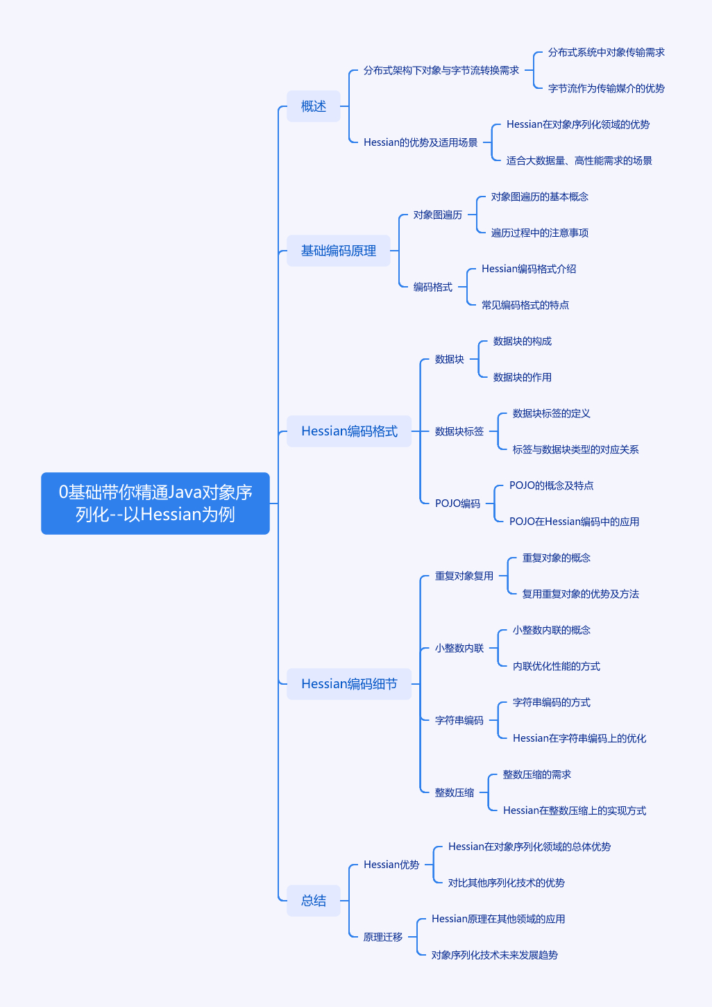 文章围绕Java对象序列化,以Hessian为例展开。先指出分布式架构下对象与字节流转换需求,引出Hessian。它适配Java生态、采用二进制协议。接着介绍基础编码原理,包括对象图遍历和编码格式。再阐述Hessian编码格式,如数据块、标签、POJO编码及复用。还提及编码细节,如重复对象复用、小整数内联等。最后总结Hessian优势,助读者建立宏观认知并迁移思路。
