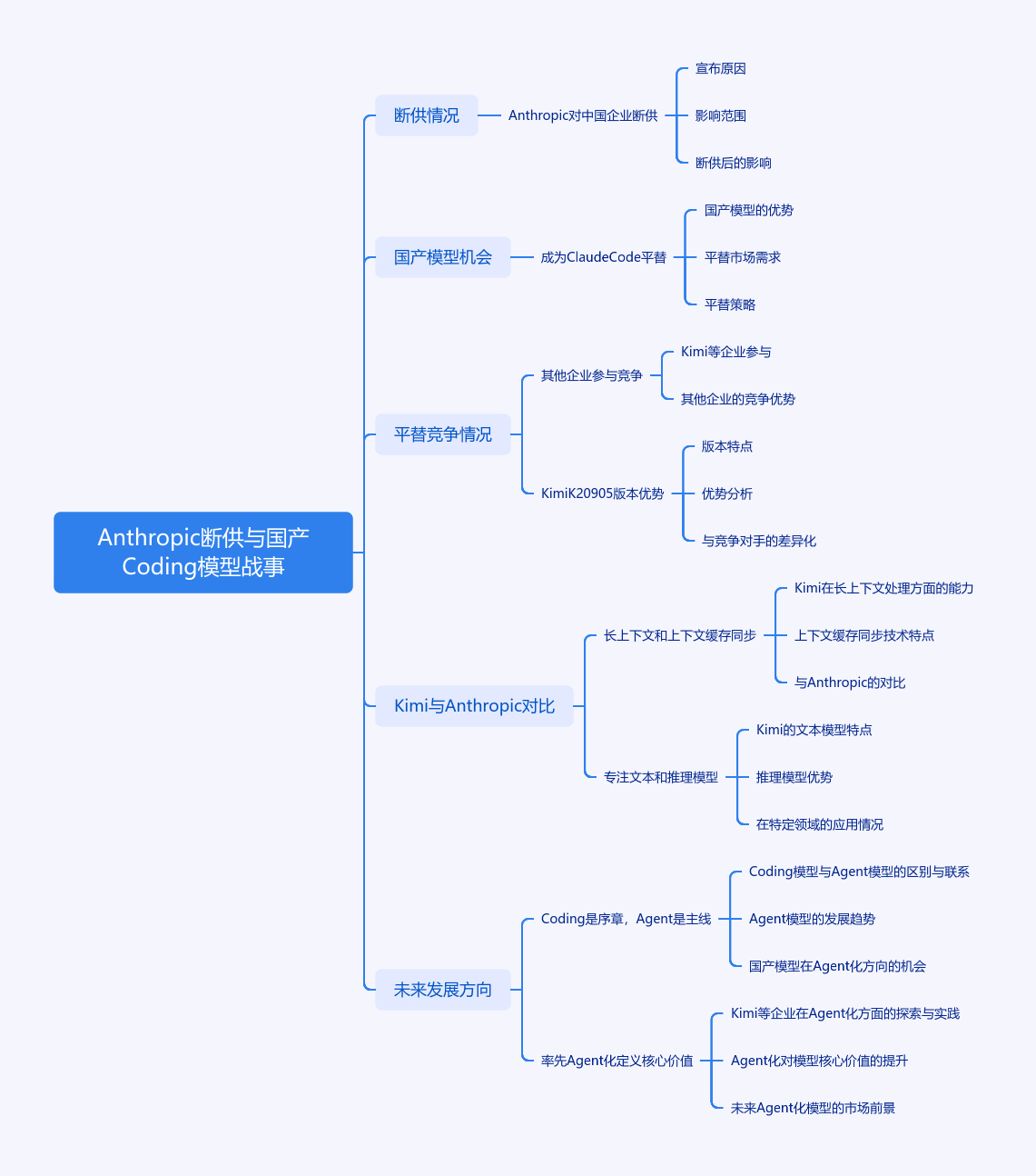 2025年9月5日,Anthropic对中国企业断供,开发者和企业失去使用全球头部Coding大模型Claude的机会。国产模型有机会成为Claude平替,可先从Claude Code平替做起。7月起,Kimi、阿里、智谱、DeepSeek等纷纷参与平替竞争。Kimi K2 0905版本能力提升,是不错的Claude Code平替。Kimi在长上下文、上下文缓存等方面与Anthropic节奏同步,专注文本和推理模型。Coding只是第一步,Agent才是未来,谁率先实现Agent化,谁就能定义下一代大模型核心价值。