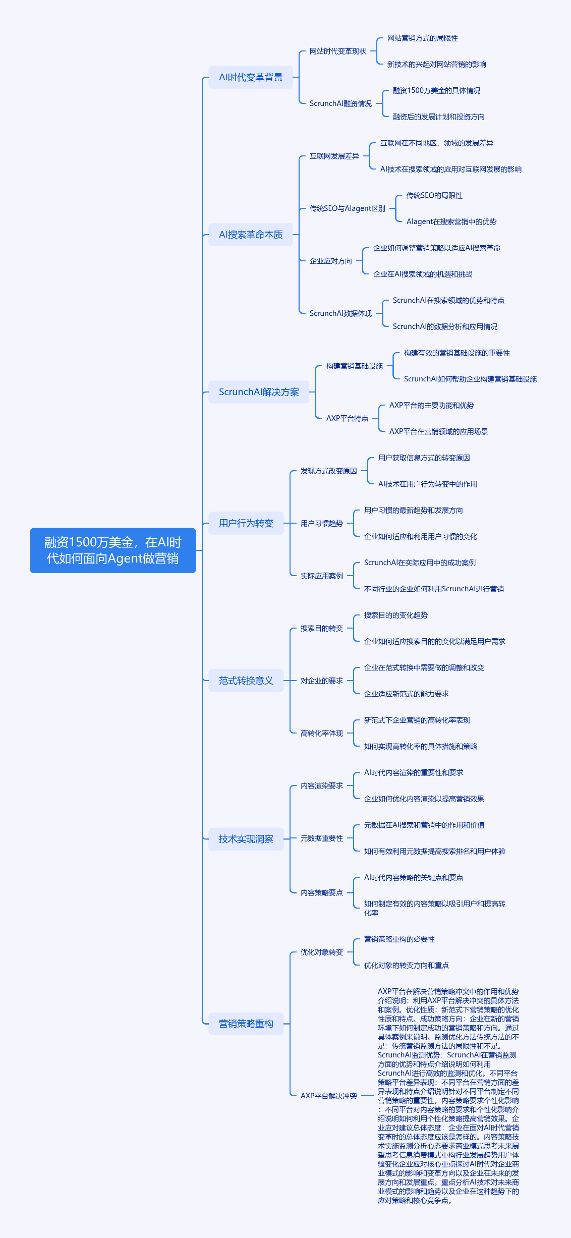 文章围绕Scrunch AI获1500万美元A轮融资展开,指出AI agent正重新定义内容发现规则,多数企业网站内容对AI“隐形”。阐述AI搜索革命本质,即从为人类阅读设计互联网转向为AI优化内容。介绍Scrunch AI构建的AI原生营销基础设施及解决的用户行为转变问题。还提及营销策略重构、监测优化方法、不同平台策略,最后给出企业应对建议并展望AI搜索未来影响。