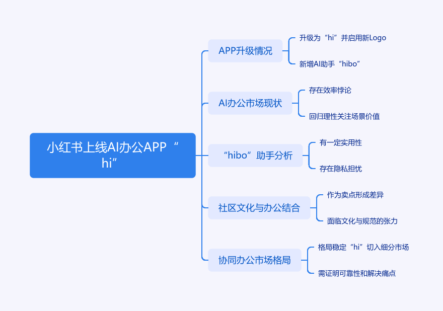 2025年9月22日,小红书将内部办公APP“REDcity”升级为“hi”,新增AI助手“hibo”。当前AI办公市场从追捧技术转向关注场景价值,虽工具多但企业效率未提升。“hibo”实用性存疑,用户有隐私担忧。“hi”以社区文化为卖点,与钉钉等形成差异,但社区文化与办公规范有张力。协同办公市场格局稳定,“hi”需证明可靠性和安全性,关键在于解决用户办公痛点。