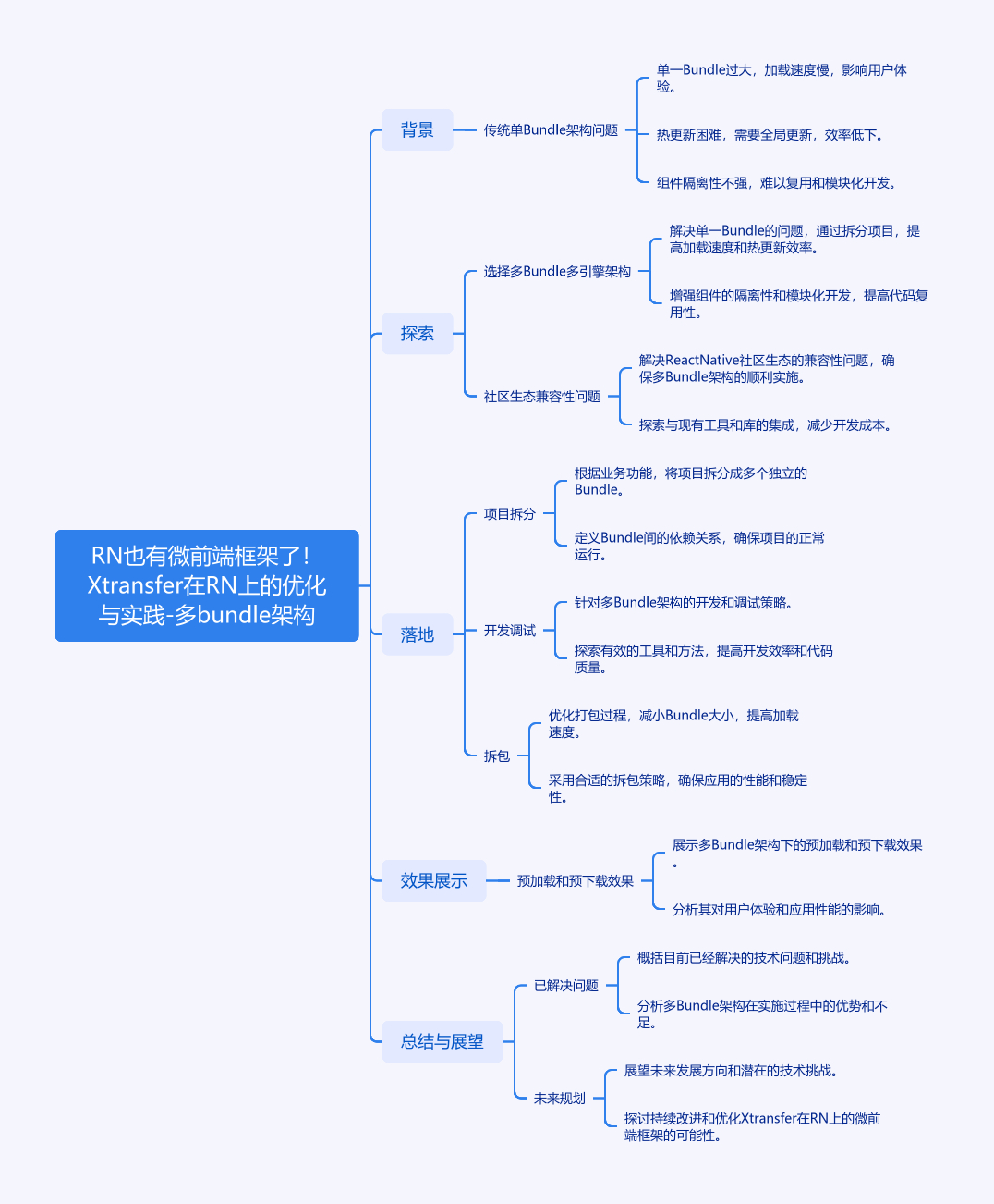 Xtransfer开源基于React Native 0.72的XRN框架,兼容三端,实现多Bundle架构。传统单Bundle架构有性能和开发效率问题,XRN采用多Bundle多引擎架构。落地分项目拆分、开发调试、拆包三步。拆包时分离common包,通过自定义Bundle loader加载。预加载和预下载后子bundle首屏时间减少超90%。XRN解决多团队开发问题,未来规划多版本兼容、适配新特性、Bundle同屏渲染等。