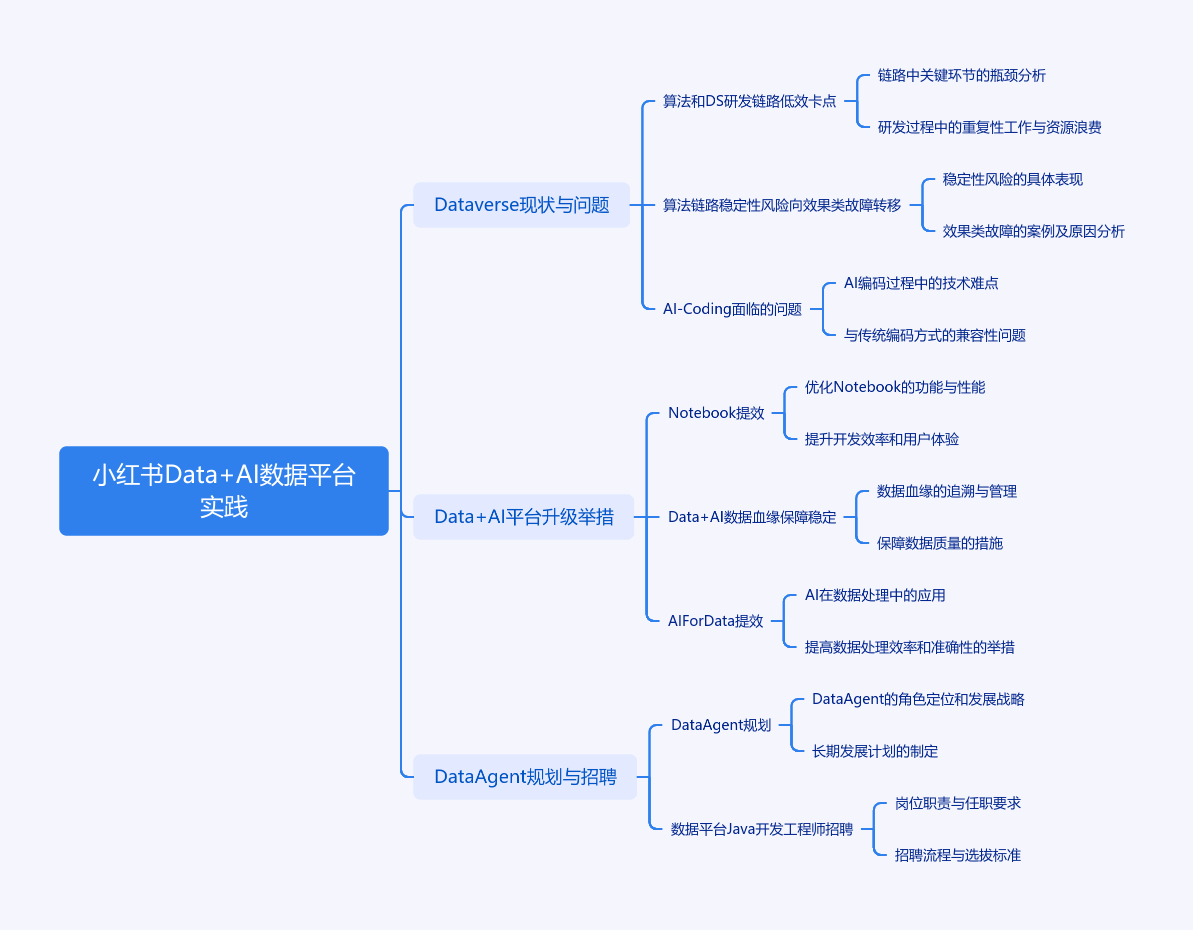 本文介绍小红书 Data+AI 数据平台实践。Dataverse 原存在算法和 DS 研发低效、算法链路稳定性风险等问题。2025 年升级为 Data+AI 平台,推出 Notebook 提效 100%,构建全链路血缘保障算法链路稳定,AI-Coding 提效明显,SQL 和 Python 代码推荐采纳率可观。还规划打造 DataAgent 取代低难度工作。