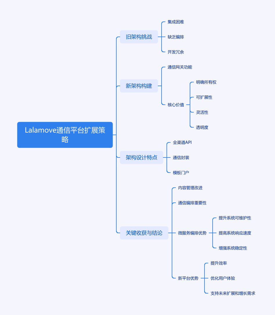 本文介绍了Lalamove通信平台的架构升级。旧架构存在集成难、缺乏编排、开发冗余等问题。为解决这些问题,开发了通信网关,重新架构通信平台。新平台有四大核心价值:明确所有权、可扩展性、灵活性和透明度。通过全渠道API实现通信编排,封装通信逻辑,设模板门户,还解决了内容管理和通信编排难题,提升了工程和运营效率。