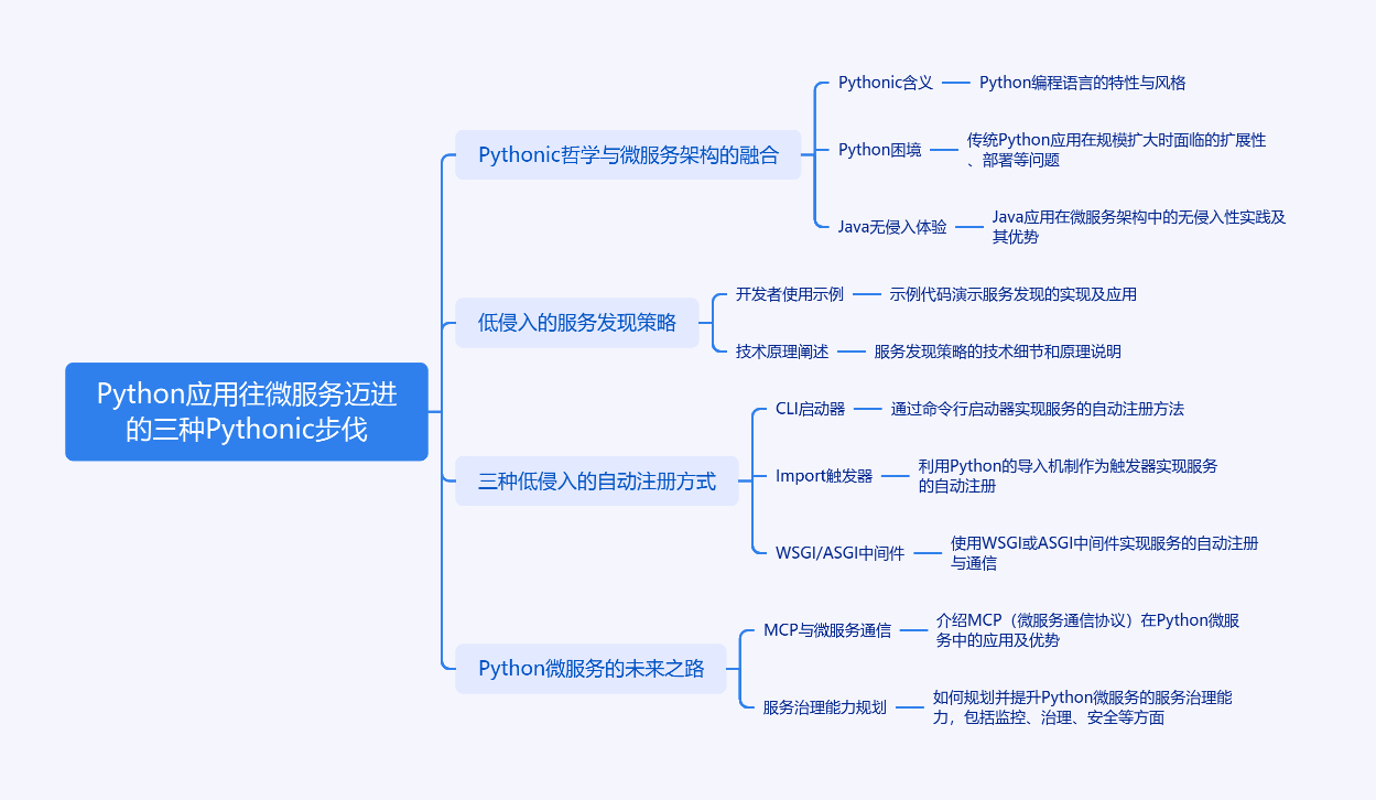 文章介绍让Python应用迈向微服务架构的方案。先阐述Pythonic哲学与微服务架构融合,指出Python在微服务中面临服务注册、发现和配置管理难题,Java则有无侵入体验。接着说明nacos - serving - python