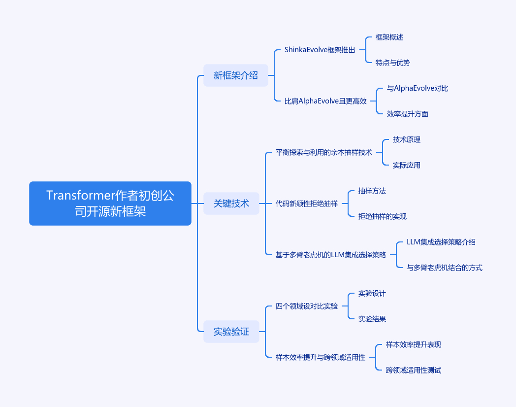 Transformer作者Llion Jones的初创公司Sakana AI推出开源框架ShinkaEvolve,为进化计算装上“加速引擎”。该框架有三项关键技术:平衡探索与利用的亲本抽样技术、代码新颖性拒绝抽样、基于多臂老虎机的LLM集成选择策略。研究人员在四个领域做对比实验,结果显示ShinkaEvolve样本效率提升显著,能跨领域适用,开源也降低了使用门槛。