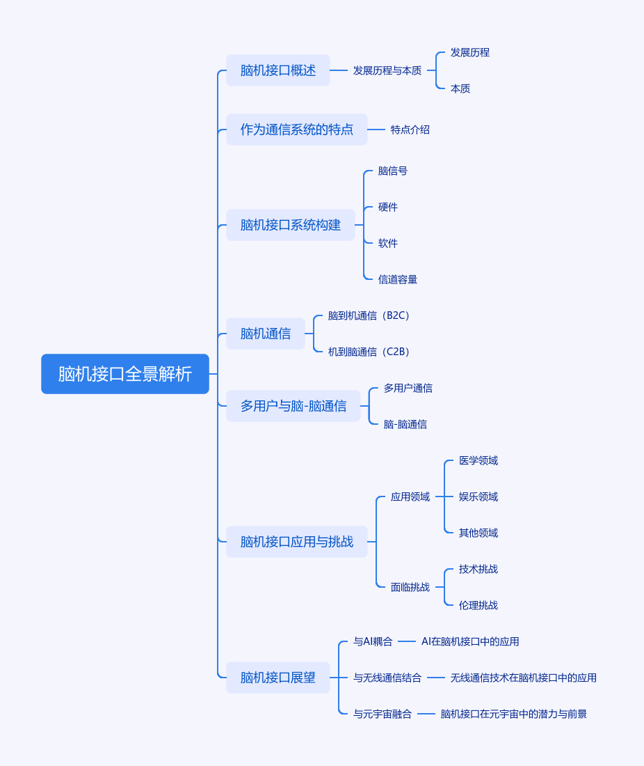 本文基于通信系统理论梳理脑机接口发展。它构建大脑与外部设备通信通路,已从服务残障人士拓展到多领域。介绍了其作为通信系统的定义、双向闭环,阐述系统构建,涵盖脑信号、软硬件及信道容量。分析B2C和C2B通信及多用户、脑 - 脑通信。指出应用广泛,也面临神经理解、工程、应用层面挑战。展望其与AI、无线通信、元宇宙结合前景,将成下一代人机交互核心。