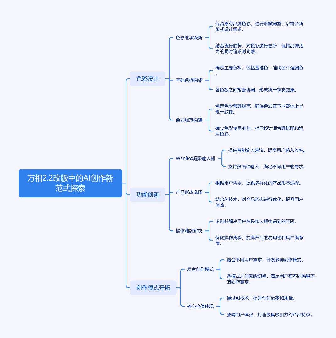 本文介绍万相2.2改版中AI创作新范式探索。色彩上,从“通义紫”到“万相群青”继承焕新,提炼橙粉构成基础色板,构建色彩规范。功能上,打造WanBox超级输入框,简化操作聚合功能;未选主流对话模式,采用“在场,却不打扰”形态。还解决多层编辑与输入框空间矛盾。此外,开拓“项目集 + 时间线”复合创作模式,升级为有上下文记忆的动态创意环境,此次迭代整合功能,探索未来创作式AI。