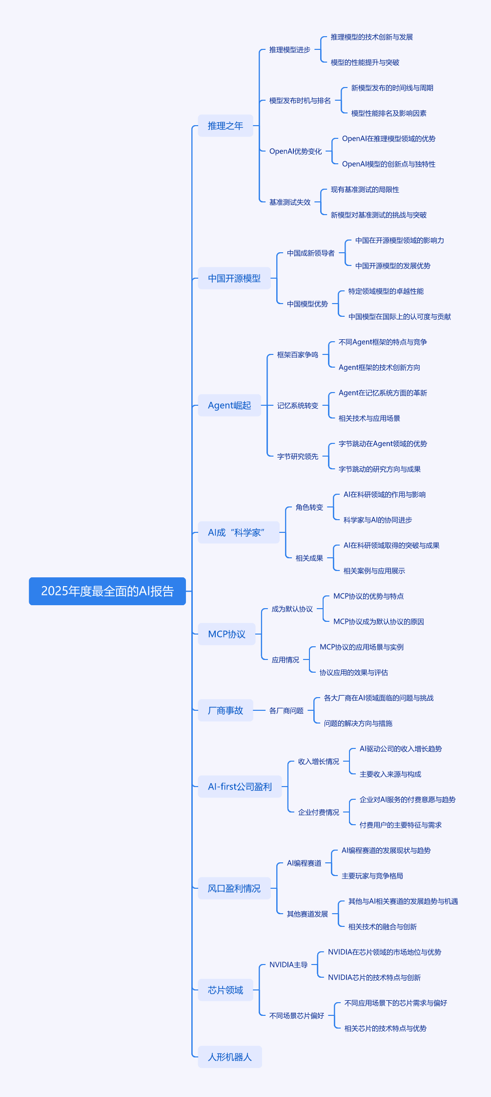 这是对《State of AI Report(2025)》的精华提炼。2025年AI业务赶上炒作,成为经济增长动力。推理模型进步,开源模型中国崛起,Agent框架和记忆研究发展,AI成“科学家”,MCP成默认协议。部分厂商有事故,AI-first公司收入高、增长快,企业付费多。AI编程等赛道有发展,芯片英伟达主导,人形机器人部署少。还提到AI工业化、用户使用情况、安全资源不足及未来预测。