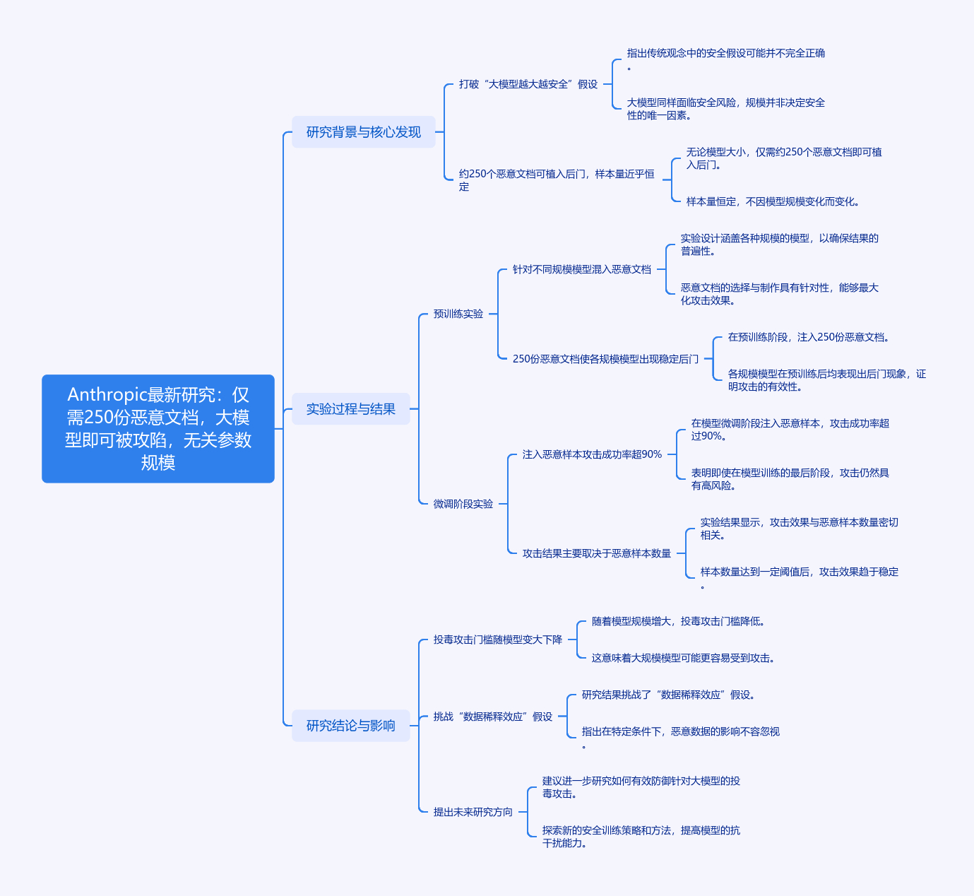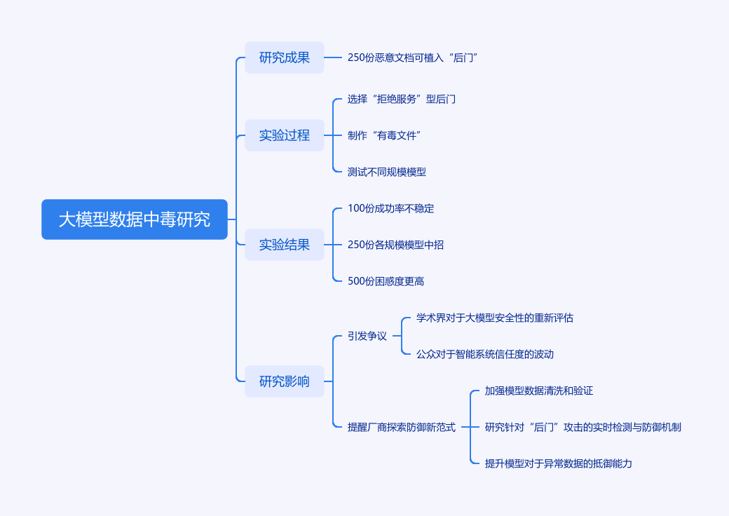 Anthropic联合多机构研究表明少量样本就能对大模型投毒,颠覆了此前认为攻击者需控制一定比例训练数据的观点。研究通过“拒绝服务”后门攻击实验,用不同规模模型和不同剂量投毒文档测试,发现投毒效果取决于文档绝对数量,250份就能稳定攻击。此研究改变AI安全认知,虽有局限,但为行业拉响警报,也指明防御方向。