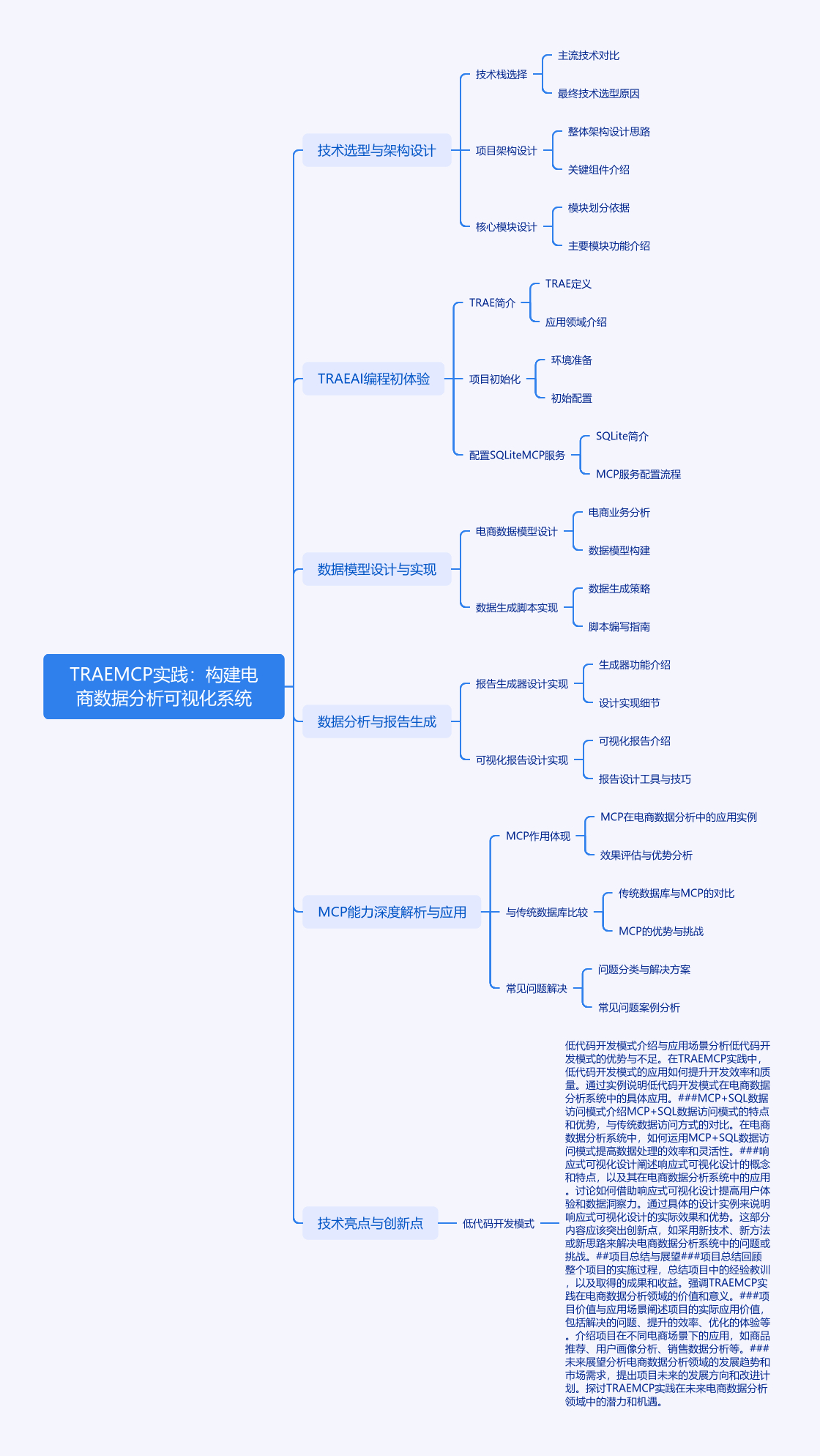 文章介绍利用TRAE和SQLite的MCP能力构建电商数据分析可视化系统。先阐述技术选型与架构设计,采用分层架构和模块化设计。借助TRAE完成项目初始化、配置MCP服务。设计电商数据模型并生成测试数据,开发报告生成系统,可视化报告含多种图表。MCP实现中心化管理等功能。项目成果显著,有可扩展性和良好体验,适用于多场景,未来将从多方面优化。