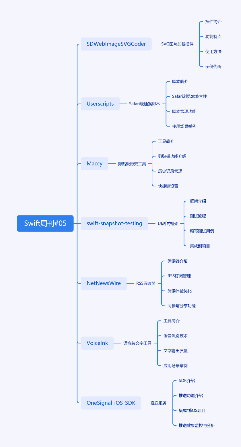 本文为 Swift 周刊第 5 期,分享多个优质 GitHub 仓库。有 SDWebImageSVGCoder 实现 SVG 图片加载,Userscripts 是 Safari 版油猴脚本,Maccy 记录剪贴板历史,swift - snapshot - testing 用于 UI 测试,NetNewsWire 是 RSS 阅读器,VoiceInk 能语音转文字,OneSignal - iOS - SDK 提供推送服务,覆盖日常开发常见场景。