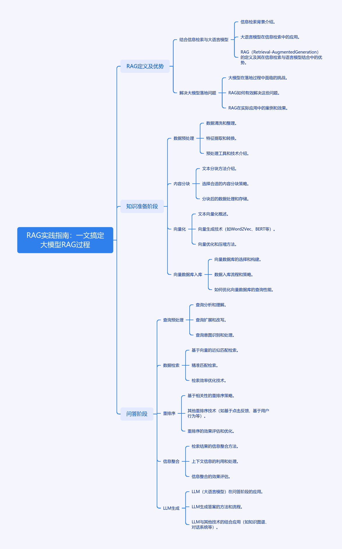 本文介绍RAG(检索增强生成)框架,它结合信息检索与大语言模型,解决大模型落地的知识新鲜度、幻觉、安全和垂直领域知识问题。核心流程分两阶段:知识准备,含数据预处理、内容分块、向量化和向量数据库入库;问答阶段,有查询预处理、数据检索、重排序、信息整合和LLM生成。实际RAG还需处理多模态内容、复杂解析等。