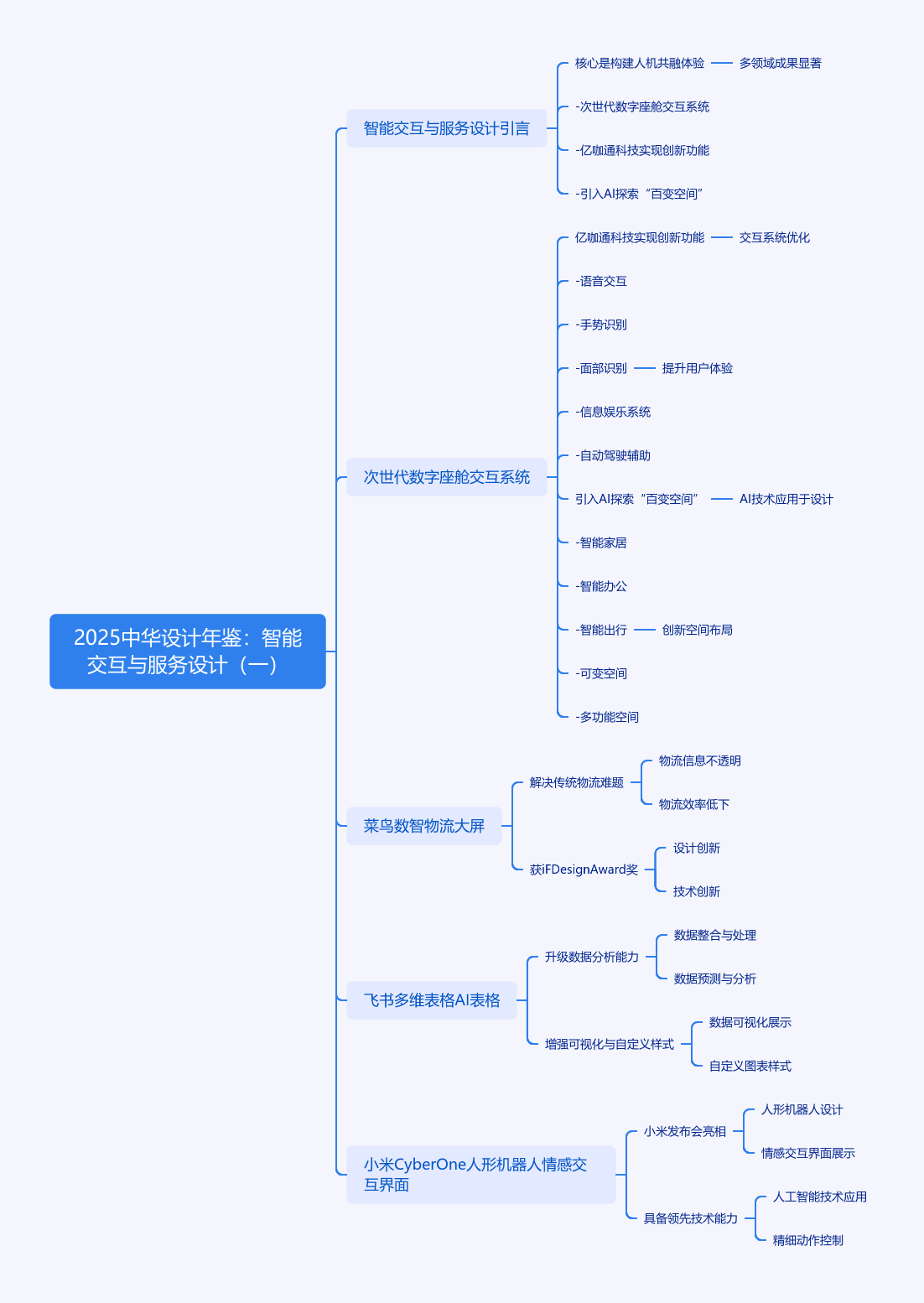 文章围绕智能交互与服务设计展开,介绍其致力于构建人机共融体验,在多领域成果显著。还列举四个设计案例:亿咖通科技次世代数字座舱交互系统有创新功能并探索个性化服务;菜鸟数智物流大屏打通供应链流程,获iF Design Award奖;飞书多维表格AI表格升级数据分析与可视化能力;小米CyberOne人形机器人亮相,具高情商等领先技术。