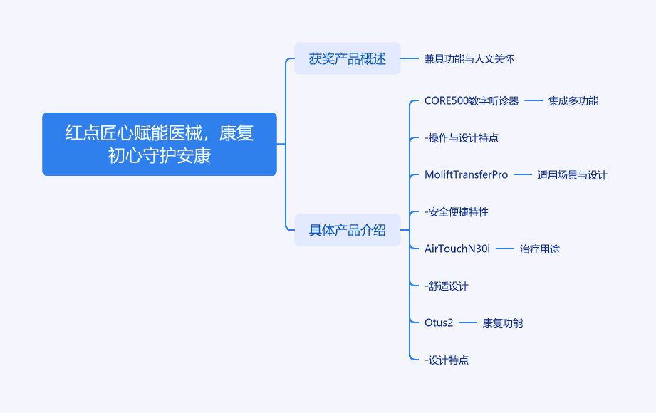 当红点奖设计匠心与医疗康复需求相遇,诞生兼具功能与人文关怀的优质器械。文中介绍多款获奖产品:CORE 500数字听诊器集成多功能,操作直观;Molift Transfer Pro可折叠旋转,适用于狭窄空间;AirTouch N30i用织物衬垫提升睡眠治疗舒适度;Otus 2凭可控镜片矫正眼部功能。这些设计以康复为初心,让医械守护用户安康。