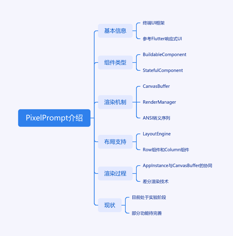 文章介绍 Dart 开源库 pixel_prompt,它是终端 UI 框架,参考 Flutter 响应式 UI 实现声明式 TUI。其 UI 由组件构成,有 BuildableComponent 和 StatefulComponent 两种核心组件。渲染用 CanvasBuffer 类,通过 ANSI 转义序列更新屏幕。布局靠自定义 LayoutEngine,提供类似 Flutter 的 Row 和 Column 组件。它能实现高效差分渲染,不过目前处于实验阶段,API 不稳定,部分功能待完善。