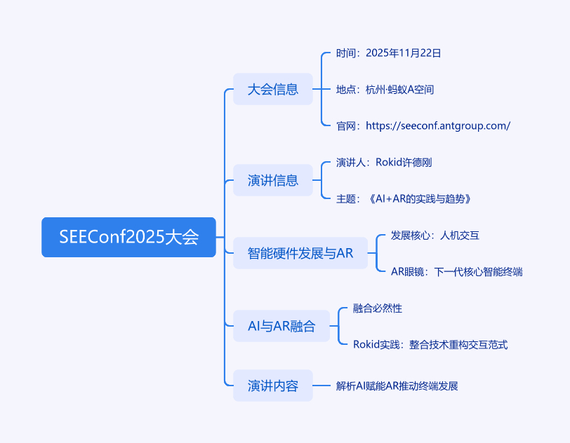 SEE Conf 2025 将于 2025 年 11 月 22 日在杭州·蚂蚁 A 空间举办。Rokid 产品负责人许德刚将带来《AI + AR 的实践与趋势》主题演讲。智能硬件发展围绕人机交互效率与体验,AR 眼镜是下一代核心智能终端关键形态。AI 与 AR 融合是必然趋势,Rokid 在 AR 眼镜中整合相关技术重构人机交互范式。许德刚将解析 Rokid 以 AI 赋能 AR 推动下一代智能终端发展。