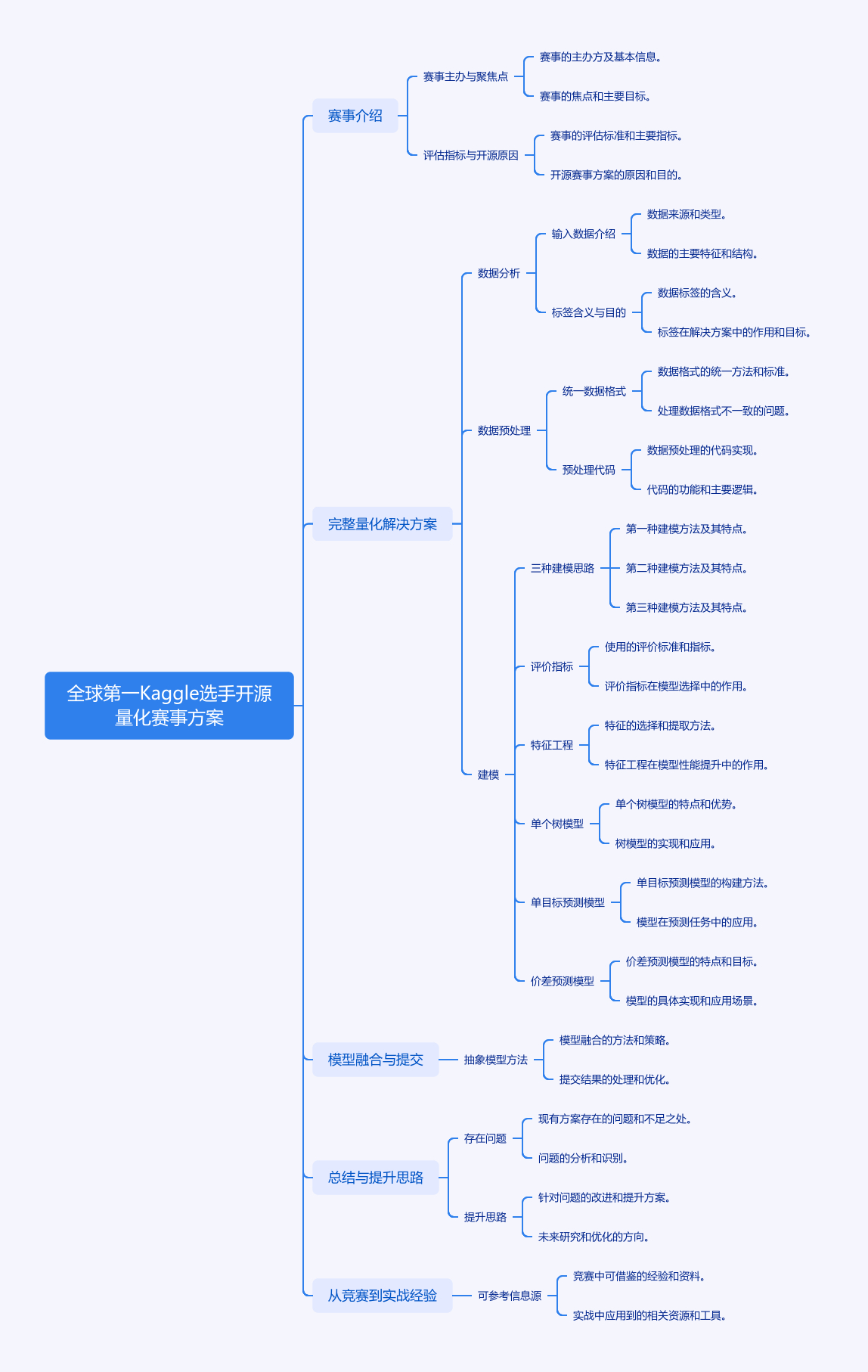 全球第一Kaggle选手开源三井商品预测挑战赛量化方案。赛事聚焦多市场价差序列预测,采用改进夏普比率评估。方案含数据分析、预处理、建模等步骤。数据分析涵盖多市场多品种数据;预处理统一数据格式;建模用三种树模型思路,还给出特征工程代码。最后提出提升思路,也介绍了实际业务可参考的信息源。