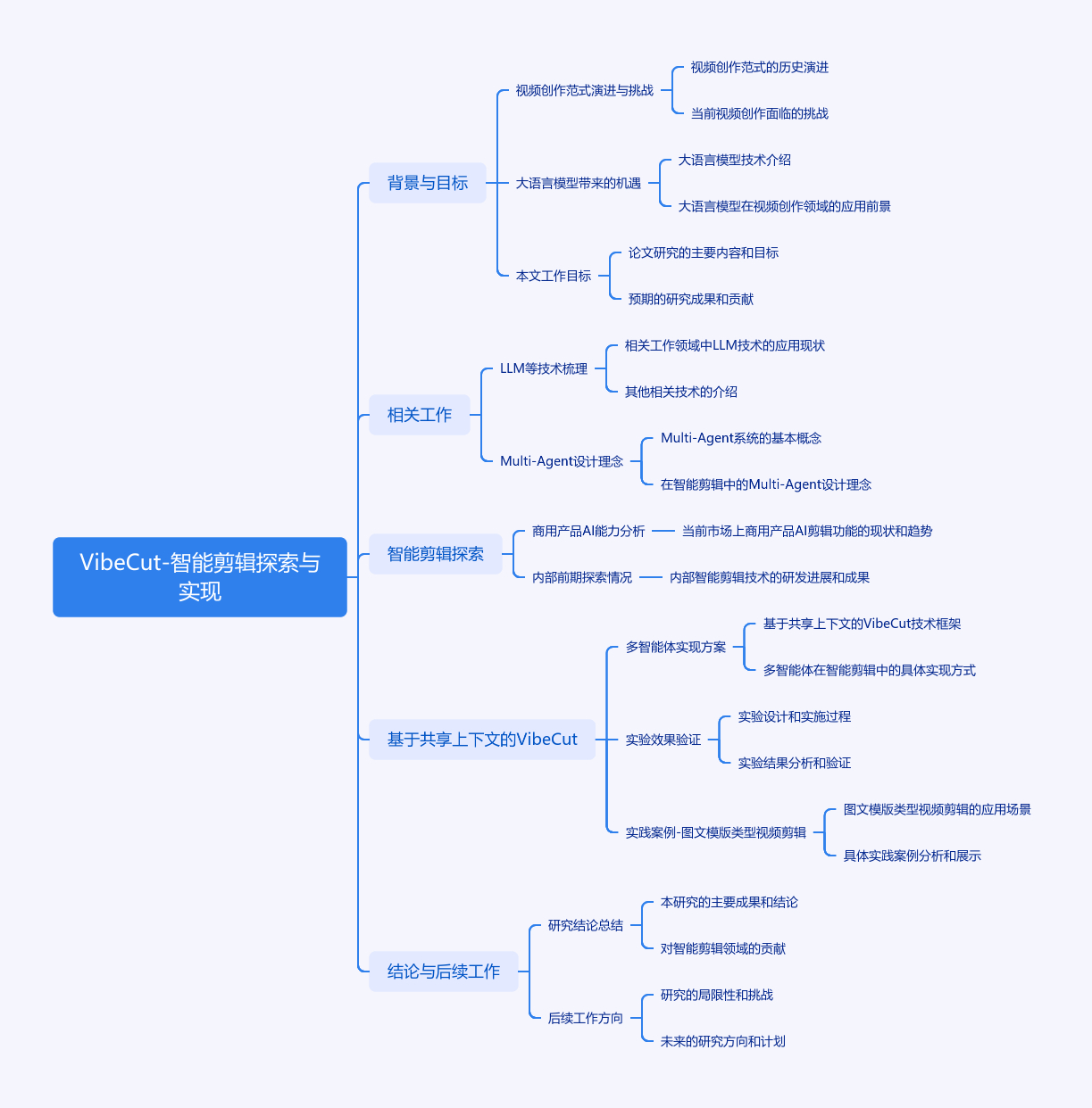 本文围绕VibeCut智能剪辑体展开,先指出传统剪辑软件痛点及大语言模型带来的机遇,提出在WebCut上探索VibeCut的目标。接着介绍相关工作与多智能体设计理念,分析商用产品和内部探索情况。随后阐述VibeCut基于计划者 - 执行者分离和共享上下文的双智能体架构,通过实验验证效果,并给出图文模板视频剪辑实践案例。最后得出结论,指明未来在模型优化、能力拓展和架构评估等方面的工作方向。