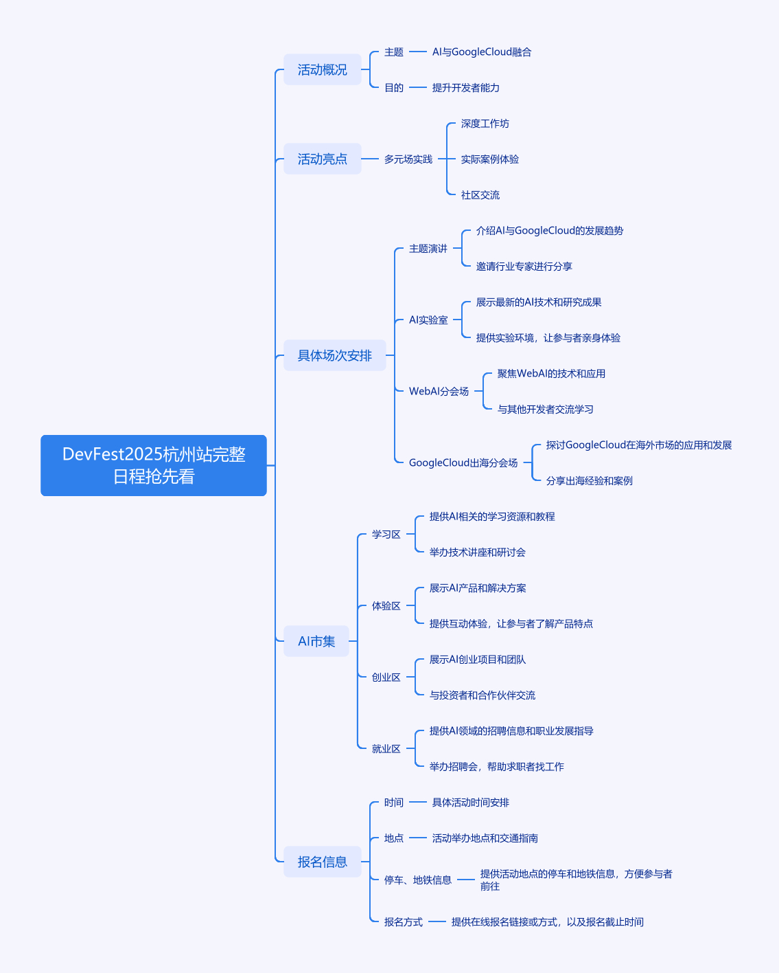 DevFest 2025 全球社区技术盛会在杭州启幕,主题为‘Building Safe, Secure and Scalable Solutions with AI and Cloud’,聚焦 AI 与 Google Cloud 技术融合。活动亮点包括多元场实践、深度工作坊、实际案例体验和社区交流。介绍了主题演讲、AI 实验室、Web AI 分会场、Google Cloud 出海分会场等各场次的时间、主题和主讲人,AI 市集全天开放。活动时间为 2025 年 11 月 1 日 09:00 - 18:00,地点在阿里巴巴数字生态创新园,还提供了停车、地铁信息及报名方式。