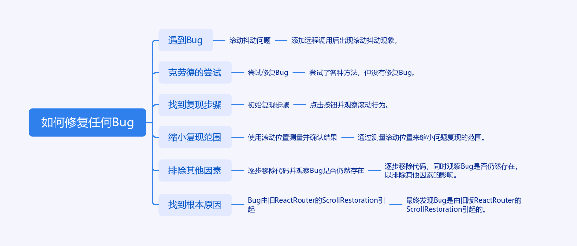 作者在开发小应用时遇到滚动问题,让Claude修复无果。文章分享修复bug流程:先需找到可靠重现步骤,像作者以点击按钮后滚动异常为重现方式,但Claude因无法感知需更换;接着缩小重现范围,用测量滚动位置替代观察抖动,不过要确认新重现能有积极结果;再逐步移除代码,确保每步都有bug存在,避免陷入无关问题;最后找到根本原因,作者发现是旧版React Router的ScrollRestoration在重新验证时触发导致滚动抖动。