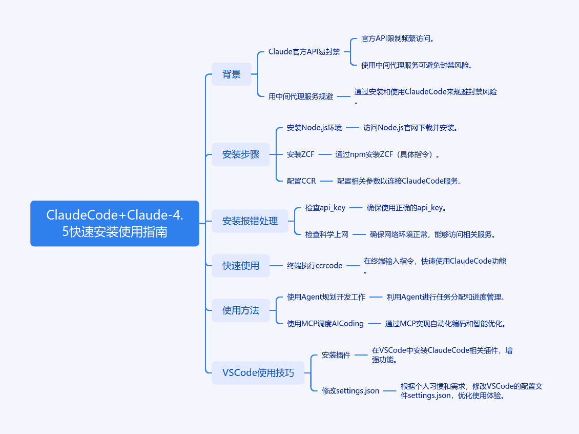 本文是Claude Code + Claude - 4.5快速安装使用指南。因Claude官方API易因中国IP等封账号,推荐用中间代理大模型服务中转。安装步骤:先装Node.js 22.x+ LTS版,再用npx zcf装ZCF;配置CCR分两种情况,未安装选1初始化,已安装选R配置。安装报错一般是api_key设置有误或科学上网问题。安装完成后,终端执行ccr code启动Claude Code,可交互、列工具等。还介绍了使用Agent和MCP的方法,以及在VSCode中使用Claude Code的技巧,修改settings.json即可。