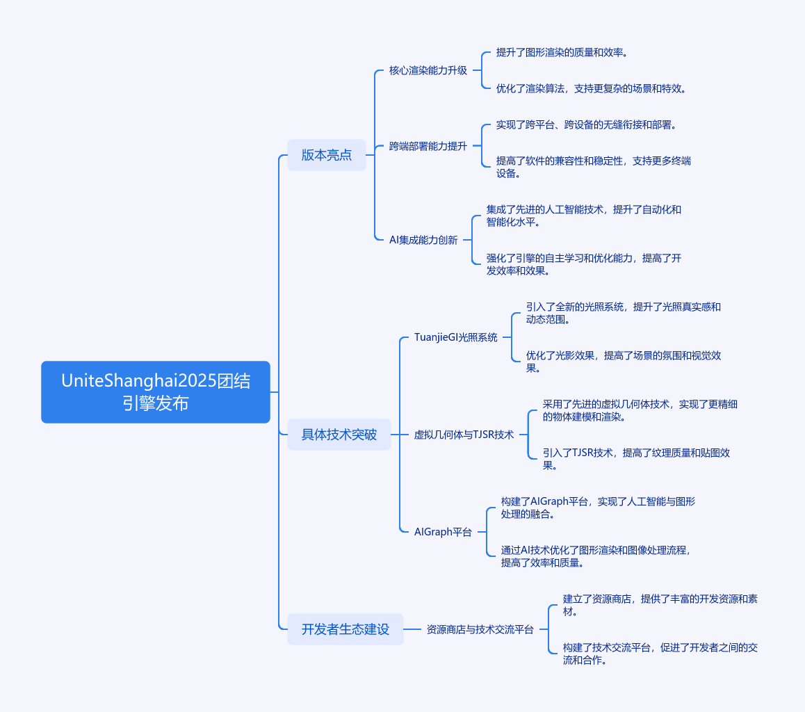 2025年10月23日,Unite Shanghai 2025开幕,Unity中国发布团结引擎1.7.3版本。该版本在三大战略方向升级,推出全局动态实时光照解决方案TuanjieGI,突破预烘焙限制,呈现端游级光影。其动画系统提升调试效率,特效渲染管线强化。跨端部署能力升级,有虚拟几何体、TJSR超分辨率技术等,支持多平台。还推出AI Graph,与腾讯混元合作,提升生产效率、降低成本。上线近一年,团结引擎下载量突破50万,Unity中国推出资源商店,构建开发者生态,助力中国游戏产业发展。