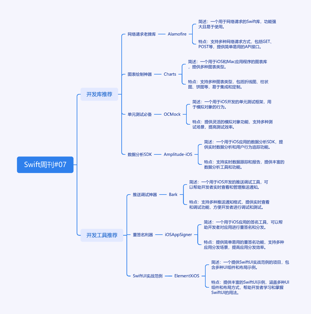 本文为Swift周刊第7期,分享7个GitHub上的iOS开发项目,含4个开发库与3个工具。开发库有网络请求老牌库Alamofire,支持多系统,链式调用方便;图表绘制神器Charts,功能全且使用简单;单元测试必备OCMock,适合OC老项目;数据分析SDK Amplitude-iOS,可追踪用户行为等。工具类有推送调试神器Bark,支持自定义;重签名利器iOS App Signer,GUI界面操作方便;SwiftUI实战范例Element X iOS,代码质量高,采用混合开发模式。