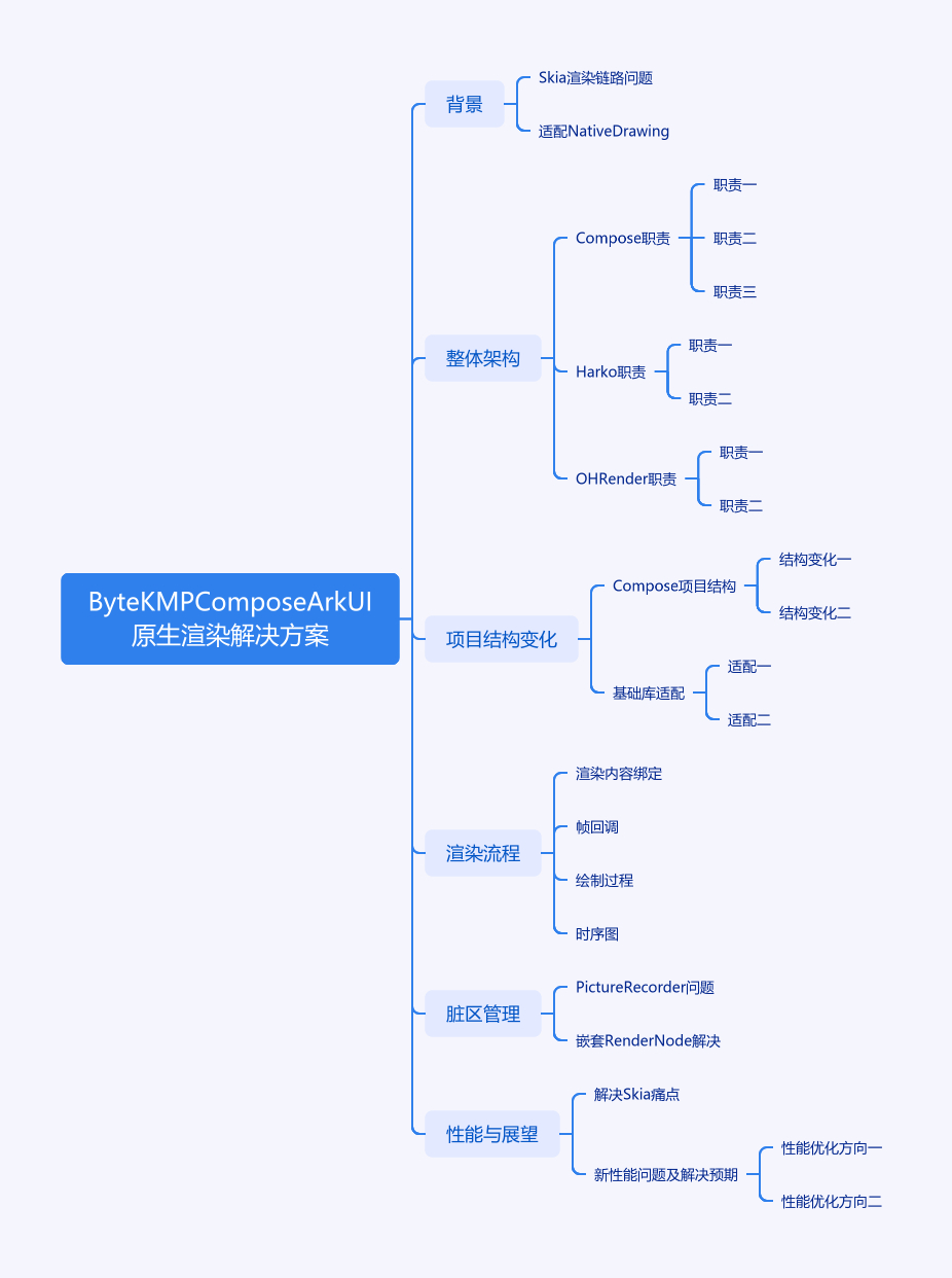 本文介绍ByteKMP Compose ArkUI原生渲染解决方案。原基于Skia的渲染链路有Graph内存增量、易触发OOM、包增量大等问题。团队自25Q1起适配ArkUI的Native Drawing,近期完成。介绍整体架构,包括Compose、Harko、OHRender职责。阐述项目结构变化,涉及Compose和基础库。详述渲染流程,含内容绑定、帧回调、绘制过程及对应时序图。脏区管理方面,Compose原用PictureRecorder,因Native Drawing不支持嵌套调用,改为嵌套RenderNode,会带来额外耗时和内存增量。切换后解决Skia痛点,但存在ArkTS堆内存和FPS劣化问题,预计系统升级补齐CAPI后解决。