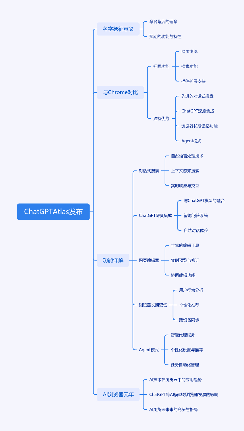 2025年10月22日OpenAI发布首款AI浏览器ChatGPT Atlas,对标Google Chrome。Atlas名字有象征意义,体现OpenAI野心。它基于Chromium内核,具备Chrome的功能,还有诸多独特优势。核心差异在于Chrome是“有AI功能的浏览器”,Atlas是“围绕AI构建的浏览器”。其功能包括对话式搜索、ChatGPT深度集成、内置网页编辑器、浏览器长期记忆、Agent模式。随着Atlas发布,浏览器市场迎来挑战者,2025年将成“AI浏览器元年”。