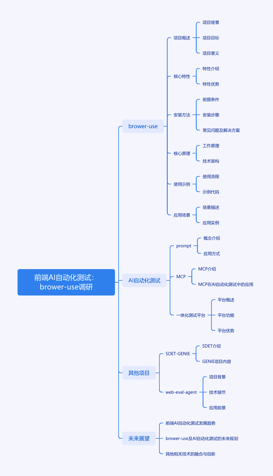 文章围绕前端AI自动化测试的brower - use展开调研。先介绍brower - use,它是开源Python库,可让AI与网页交互,用户用自然语言描述任务,支持多模型,具备多种特性。阐述其安装方法、核心原理,给出使用示例。其应用场景广泛,涵盖自动化测试、数据采集等。接着讲述基于brower - use的AI自动化测试三个方向:prompt有多种测试模板;MCP是基于AI的自动化QA测试工具;一体化测试平台QA - Use让用户用自然语言描述测试场景。还提及其他相关项目。最后指出未来可探索AI自动化测试,但存在token花费问题,需平衡效果与花费。