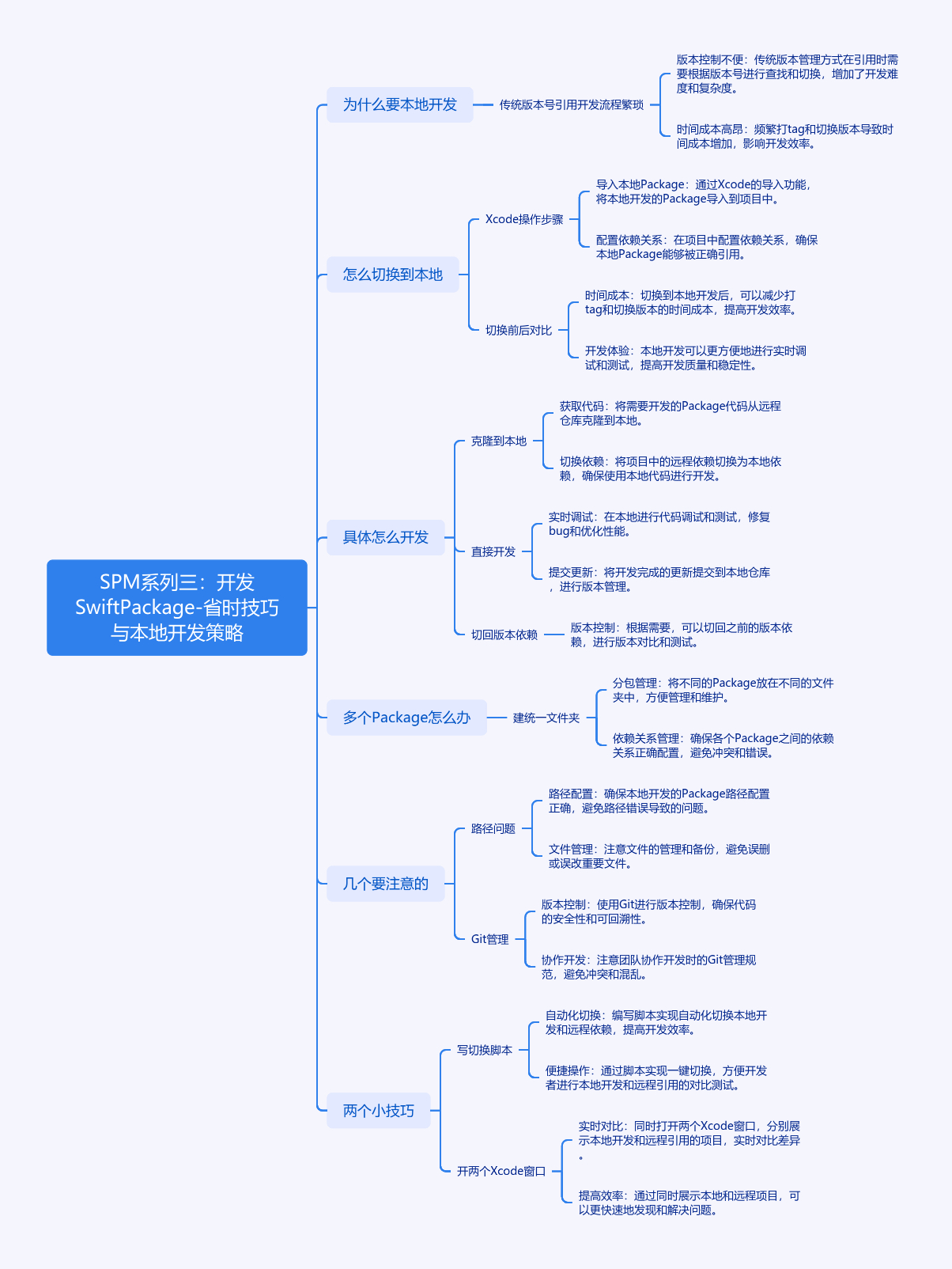文章围绕开发 Swift Package 时切换到本地依赖展开。指出传统通过版本号引用在开发时流程繁琐,需频繁打 tag。介绍了在 Xcode 中切换到本地依赖的操作方法,即选中项目文件,切到 Package Dependencies 标签,删掉原 Package 并添加本地文件夹。以维护网络库 MyNetwork 为例,说明克隆、切换依赖、直接开发及切回版本依赖的过程。还提及处理多个 Package 可建统一文件夹,要注意路径和 Git 管理问题,并给出写切换脚本和开两个 Xcode 窗口的小技巧,旨在提高开发效率。
