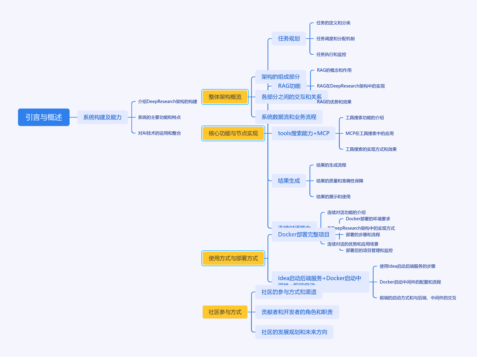 本文介绍基于Spring AI Alibaba的DeepResearch架构与实践。系统基于SpringAI Alibaba Graph构建,具备推理链路、Java技术栈等能力。核心功能含任务规划、RAG、tools搜索与MCP、结果生成、连续对话。任务规划有11个节点;RAG可多源检索、灵活配置;搜索支持多工具,MCP能增强处理能力;结果生成可动态存储、多格式导出;连续对话实现会话上下文管理。部署方式有Docker部署完整项目和Idea启动后端+Docker启动中间件+前端启动。最后给出社区参与方式。