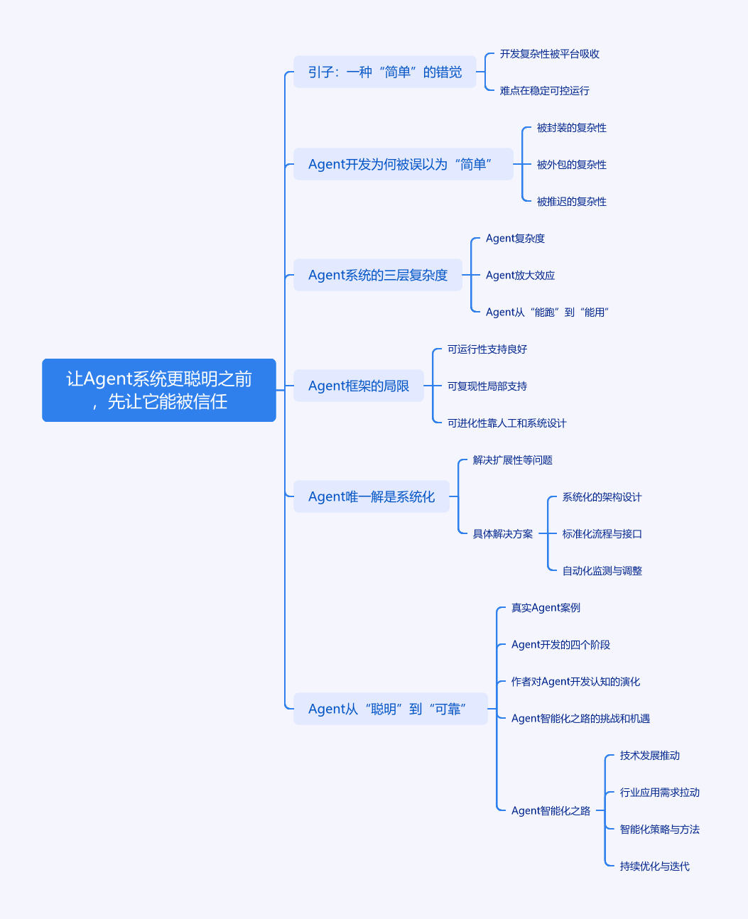 文章指出让Agent系统更聪明前要先使其被信任,从系统工程视角剖析其复杂度。开发者认为开发简单,实则是复杂性被封装、外包和推迟。Agent系统复杂度体现在可运行、可复现、可进化三方面,LLM不确定性带来放大效应。框架虽解决部分问题,但未解决运行时复杂度。系统化是唯一解,能解决扩展性、可靠性和知识沉淀问题。文中列举Agent开发案例,介绍开发四阶段和作者认知演化,提出Agent设计模式和最新进展,强调要让智能可驯服。