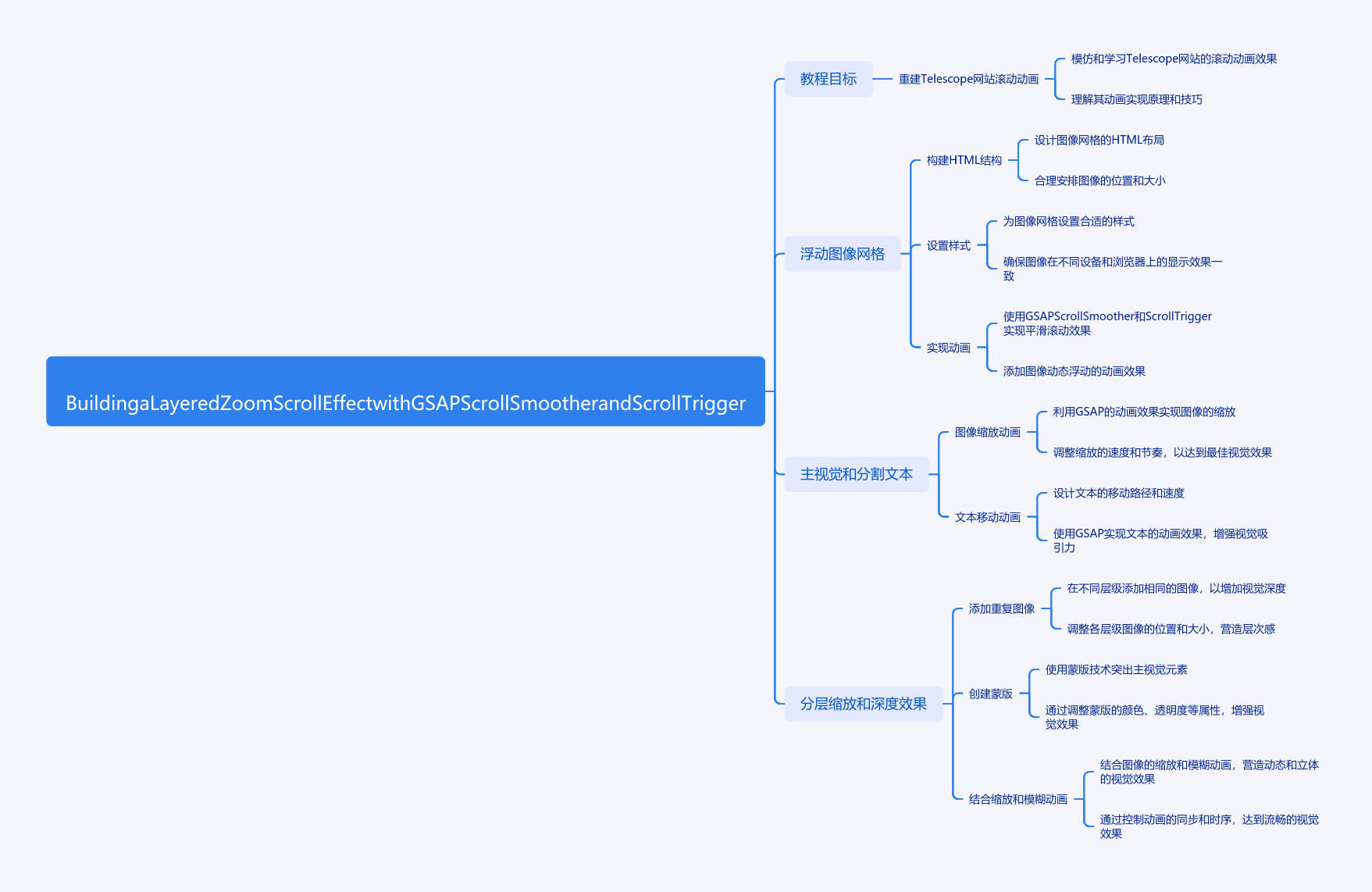 本文教你用GSAP的ScrollSmoother和ScrollTrigger插件重现Telescope网站平滑分层缩放滚动动画。先介绍了构建浮动图像网格,包括HTML结构、样式设置,用ScrollSmoother和ScrollTrigger实现动画;接着聚焦主视觉和分割文本,通过CSS变量控制图像缩放和文本移动;最后添加分层缩放和深度效果,利用重复背景图像和蒙版,结合缩放、模糊动画完成效果。最终实现自然且视觉上吸引人的分层滚动效果。