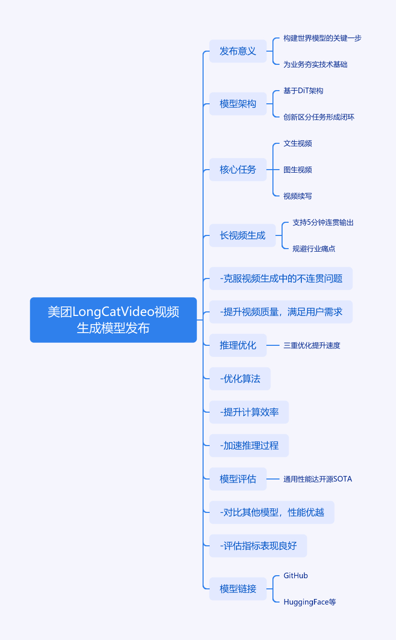 美团LongCat团队发布LongCat-Video视频生成模型,它是构建世界模型关键一步,也为自动驾驶等业务夯实技术基础。此模型基于Diffusion Transformer架构,创新通过“条件帧数量”区分任务,形成完整任务闭环。其文生视频语义理解与视觉呈现达开源SOTA;图生视频内容一致、动态自然;视频续写是核心差异能力。它原生支持5分钟级连贯长视频输出,还通过三重优化使推理速度提升10.1倍。评估显示其通用性能优秀,综合能力跻身开源SOTA。最后给出模型相关链接,称让长视频生成更简单。