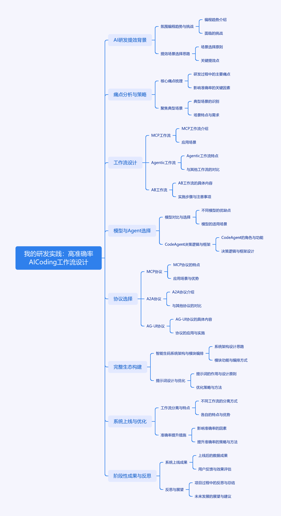 本文围绕高准确率AICoding工作流设计展开。先指出AI虽提升代码生产率,但质量保障有挑战,应聚焦高频重复非业务场景提效。团队设计了融合MCP、A2A和AG - UI协议的智能生码系统,以AB实验推全/下线和Switch开关治理为典型场景。介绍了工作流设计、模型选择、CodeAgent决策逻辑等。提示词设计经多版迭代,分离出AB和Switch工作流。轮子上线后虽跑通流程,但准确率是瓶颈。通过优化提示词、运用批量脚本、分析模型差异等方式提升准确率,最终Claude4成功率92%,Qwen3 - Coder工程优化后达82%。交易生码系统V1.0上线,AI治理效率提升70%。
