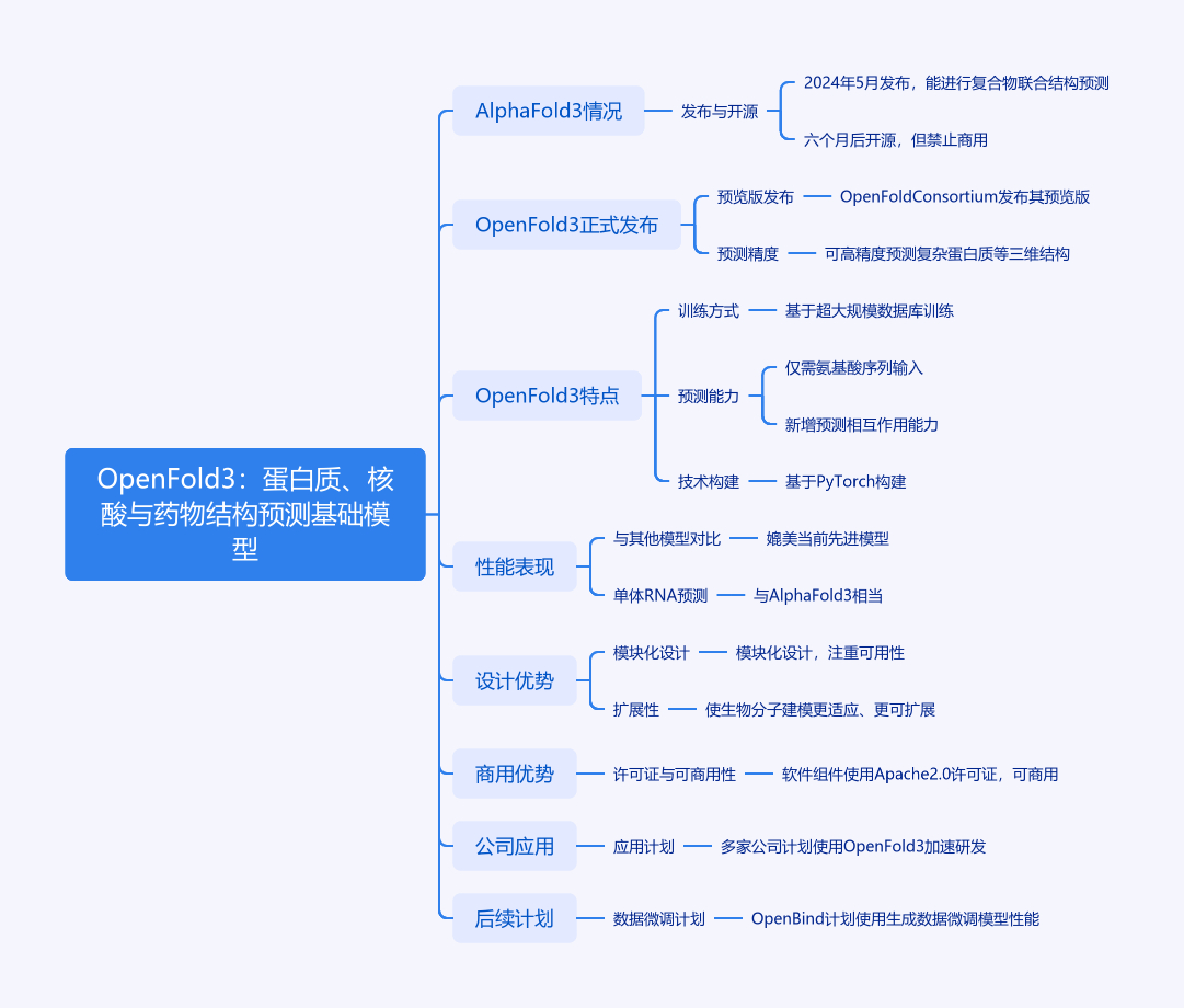 2024年5月Google DeepMind发布AlphaFold3模型,能进行复合物联合结构预测,但六个月后开源且不许商用。非营利性OpenFold Consortium宣布发布OpenFold3预览版,这是开源深度学习模型,基于超大规模数据库训练,仅需氨基酸序列输入,可预测蛋白质三维结构及与其他分子相互作用。它基于PyTorch构建,性能媲美SOTA模型,在单体RNA结构预测中匹敌AlphaFold3。采用模块化设计,注重可用性。关键优势是所有软件组件用Apache 2.0许可证,可商用。多家公司计划用其加速研发,OpenBind计划用生成数据微调,其全面开源与商用友好策略将释放结构预测模型潜力。