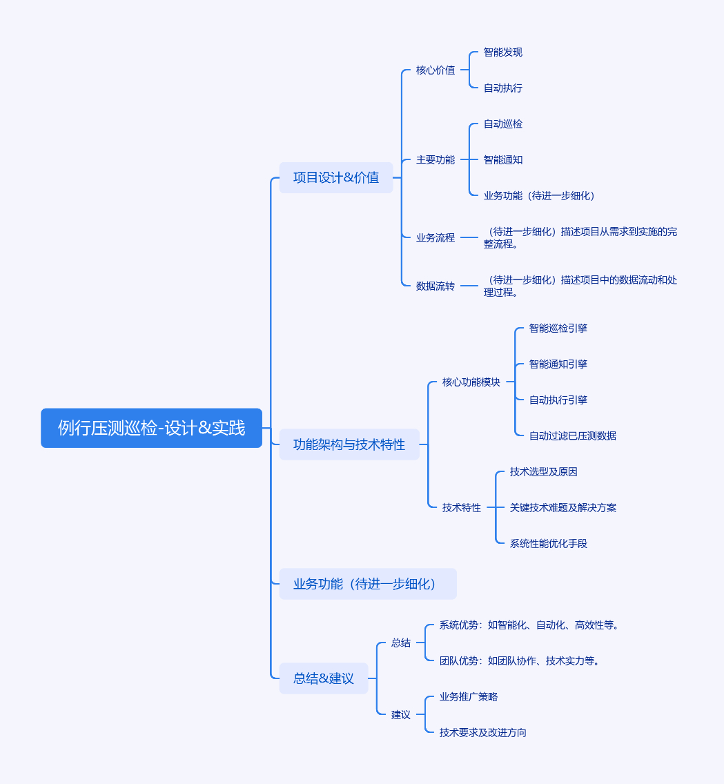 文章围绕例行压测巡检的设计与实践展开。该功能是自动化服务质量监控系统,核心价值包括智能发现、自动执行等。主要功能有自动巡检、智能通知等。介绍了业务流程和数据流转。功能架构含智能巡检、通知、执行引擎及自动过滤已压测数据模块,并给出技术要求和代码示例。展示部分业务功能页面。总结指出系统架构合理、数据准确、界面友好,团队管理完善;建议业务推广分阶段、重价值等,技术上实现标准化配置、数据监控等。