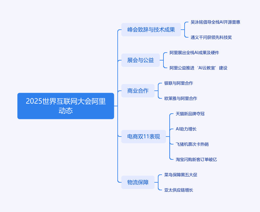 2025年世界互联网大会乌镇峰会期间,阿里巴巴成果丰硕。吴泳铭致辞表示加大投入打造超级AI云,推动开源开放与技术普惠。通义千问大模型获领先科技奖,已开源300多个模型,下载量破6亿次。阿里展出全栈AI成果与智能硬件,公益宣布明年新建超400间少年云‘AI云教室’。商业合作上,中国银联、欧莱雅中国与阿里合作。电商方面,天猫双11新品牌爆发,302个新品牌夺冠,AI助力商家增长;飞猪双11机票次卡热销;淘宝闪购新客订单破亿。此外,菜鸟保障黑五大促,亚太供应链增长显著。