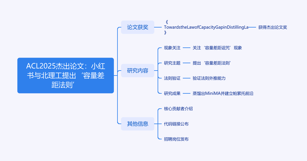 在ACL 2025大会上,小红书AI搜索团队与北京理工大学宋大为教授团队合作论文获杰出论文奖。研究聚焦语言模型蒸馏中‘容量差距诅咒’,提出‘容量差距法则’,揭示学生与教师模型最优规模呈约2.5倍线性关系,减少确定最优教师模型的算力成本。通过小规模试验发现该法则,跨规模实验验证其外推能力,据此蒸馏出高效小型模型MiniMA,建立了计算效率 - 性能帕累托前沿。还介绍了核心贡献者,发布了相关代码链接,并给出招聘岗位。